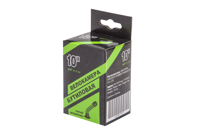Базовая бутиловая камера NTG для детских велосипедов, беговелов, самокатов, колясок, тележек. Обладает размером под колеса 10" и ширину 2,0". Ниппель согнутый, стандарт AV, рассчитан для установки с ободами под автомобильный ниппель (Schrader). Ниппель хорошо удерживает давление, резиновый состав хорошо устойчив к проколам. Камера рассчитана на посадочный размер 54-152.