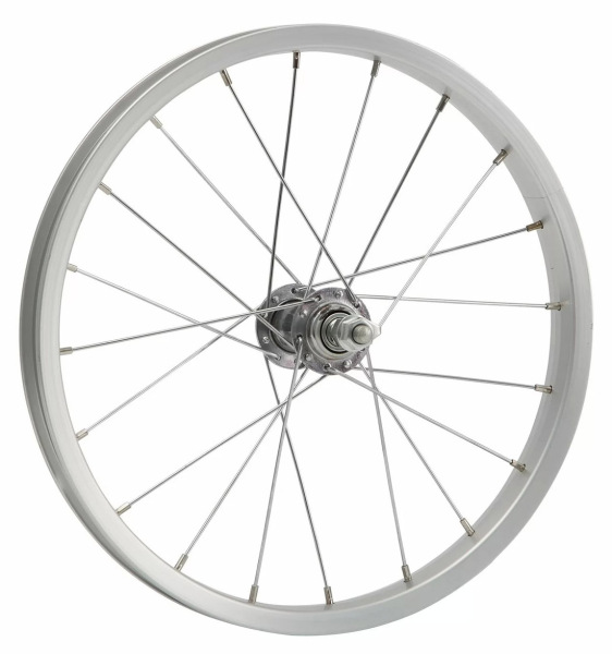 Колесо переднее STG в сборе, готовое к установке. Имеет стандартный размер 16". Подойдет для складных, детских и мини велосипедов, а также к некоторым моделям самокатов. Втулка оснащена стальным сборным корпусом с 16 отверстиями, насыпными подшипниками. Ось выполнена из стали, фиксируется гайками, имеет ширину 93 мм. Спицы стандартные стальные 2 мм. Обод алюминиевый с одной стенкой, без тормозной дорожки для V-brake, не пистонированный, на 20 спиц, имеет внутреннюю ширину 21 мм и внешнюю 28,5 мм. Оптимальным сочетанием будут покрышки с шириной от 1,75 до 2,25". Выпускаются колеса в серебристом цвете. Стоит заметить, что колесо полностью готово к установке -собрано и протянуто, но в сборку не входят: ободная лента, камера и покрышка.