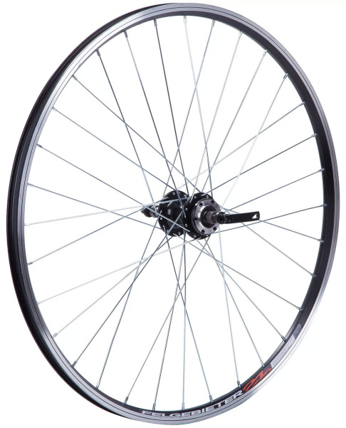 Универсальное заднее колесо в сборе, готовое к установке. Имеет стандартный размер 27,5". Лучше всего подойдет для MTB и городских велосипедов, также для гибридных, треккинговых и некоторых прогулочных моделей. Рассчитано для установки с трещотками на 6-8 скоростей и в рамы с шириной меду перьями 135 мм. (O.l.d). Втулка Shangfu SF B07R оснащена алюминиевым корпусом с 32 отверстиями, промышленными подшипниками, креплением тормозного ротора на 6 болтов. Ось выполнена из стали, фиксируется эксцентриком. Спицы стандартные стальные 2 мм 14G. Обод Felgebieter, алюминиевый с двойной стенкой, с тормозной дорожкой под ободной тормоз и индикатором износа, не пистонированный. Оптимальным сочетанием будут покрышки с шириной от 1,75 до 2,25", поддерживает колесо оптимальную нагрузку до 100 кг. Выпускаются колеса в черном цвете обода и втулки с серебристыми спицами. Стоит заметить, что колесо полностью готово к установке, оно собрано и протянуто. В сборку не входят: ободная лента, камера, покрышка, трещотка и болты для ротора.