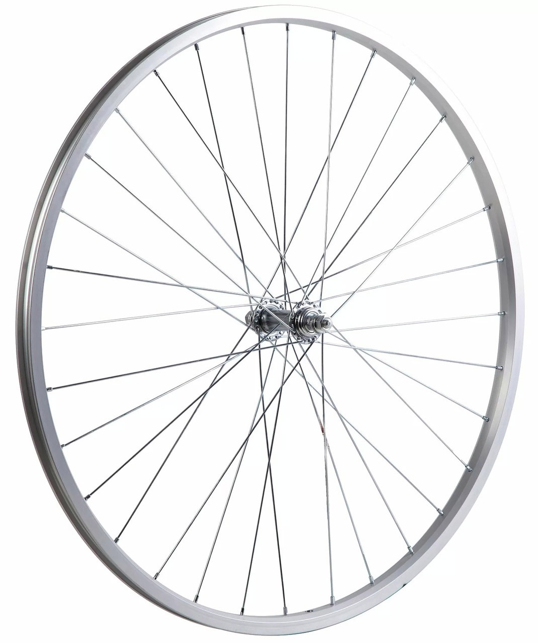 Колесо переднее в сборе, готовое к установке. Имеет распространенный размер 28". Оптимально рассчитано для начального уровня городских, дорожных, некоторых советских велосипедов. Рассчитано для установки в вилки с шириной меду дропаутами 100 мм. (O.l.d). Втулка оснащена стальным корпусом с 32 отверстиями, насыпными подшипниками. Ось выполнена из стали, фиксируется гайками. Спицы стандартные стальные 2 мм 14G. Обод алюминиевый с одной стенкой, с тормозной дорожкой для ободных тормозов, не пистонированный, ширина внешняя 25 мм, внутренняя 19 мм. Оптимальным сочетанием будут покрышки с шириной до 2.1", поддерживает колесо оптимальную нагрузку до 100 кг. Выпускаются колеса с серебристым ободом и хромированными спицами и корпусом втулки. Стоит заметить, что колесо полностью готово к установке, оно собрано и протянуто. В сборку не входят: ободная лента, камера, покрышка.