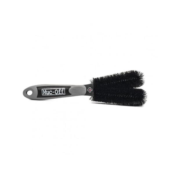 Щетка очистки труднодоступных загрязнений Muc-Off Two Prong Brush - Практичный инструмент для удаления труднодоступных загрязнений со спиц, тормозных роторов, амортизаторов, шатунов и деталей подвески. Подойдет как для велосипедов, так и для любой схожей техники. Большая мягкая щетина не царапает лакокрасочные покрытия и не оставляет завихрений. Двойную головку щетки можно изогнуть и сместить в сторону для очистки самых недоступных мест. Широкая резиновая рукоятка удобно лежит в руке, не соскальзывает и комфортна в работе как в перчатках, так и без них. Отлично сочетается с шампунями и специализированными очистителями для металлических и лакокрасочных покрытий, например с фирменным универсальным чистящим средством NANO-TECH BIKE CLEANER. Muc-Off - один из ведущих производителей химии и смазок для велоиндустрии, способствующий должному уходу и правильной работе Вашего велосипеда.