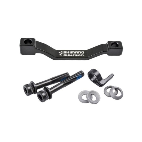 Shimano SM-MA-F220P/PL - стандартный адаптер для установки калипера. Сочетается с тормозными дисками 220 мм. В комплекте оснащен болтами для фиксации тормозной машинки, пластиковым стопорным кольцом для болта и комплектом регулировочных шайб.