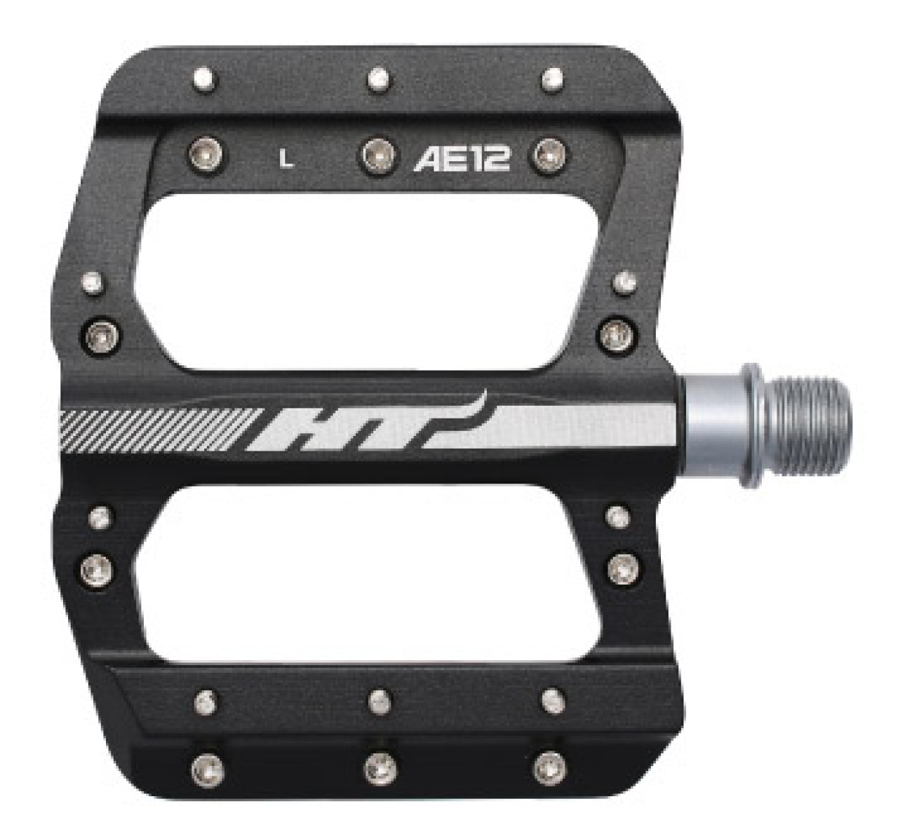 Педали HT AE12 созданы для ценителей максимальной надёжности и комфорта. За счет применения технологии EVO — эти педали станут для вас простыми и удобными в обсуживании. Они не требуют тщательного ухода, не прихотливы к грязи, а специально обработанный алюминий на станках с ЧПУ препятствует коррозии. Всего 17 мм высоты профиля заметно снижают центр тяжести педали, что положительным образом сказывается на управляемости. А алюминиевая платформа, имеющая 10 сменных шипов на одну сторону, достаточно прочна, для того что бы выдержать удары камней, неизбежно возникающие во время катания по сложным участкам трасс.