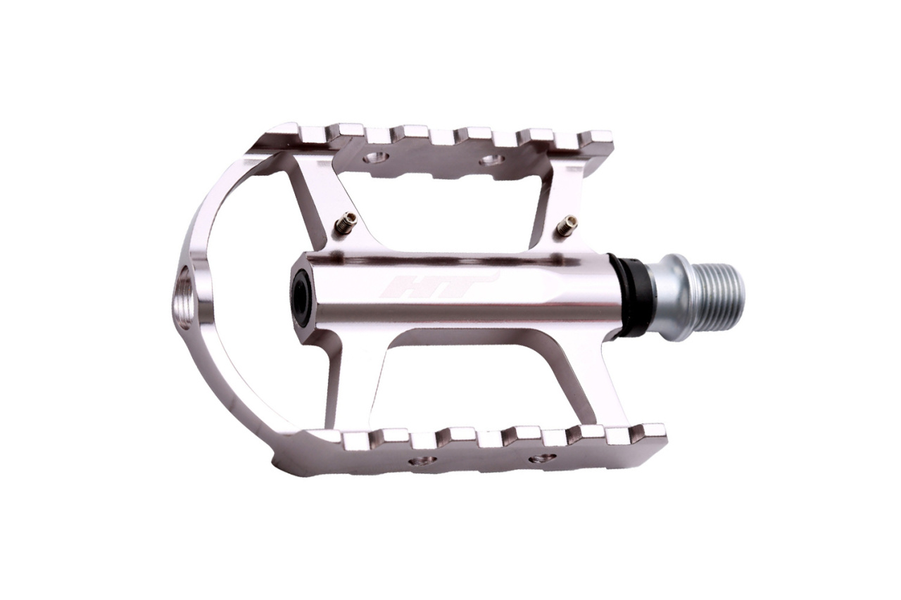HT ARS02 - легкое и надёжное решение для активного катания по городу и на пересеченной местности. Форма и размеры корпуса педали удобны для катания в повседневной обуви, в виду чего станут хорошим вариантом для городского, треккингового, горного и гибридного велосипеда. Корпус выполнен из алюминия с применением ЧПУ обработки. Собрана с использованием 3 промышленных подшипников и втулки скольжения IGUS, что в сумме дает легкое вращение и высокую надежность на продолжительное время. Корпус фиксируется на Cr-Mo ось, выполненную с CNC обработкой и имеющую стандартную резьбу 9/16". Характеристики также не уступают материалам - вес пары 255 грамм, размер площадки 90 X 67 X 16 мм, сменные центральные шипы. Педали не комплектуются светоотражателями и в продажу поступают в черном цвете.