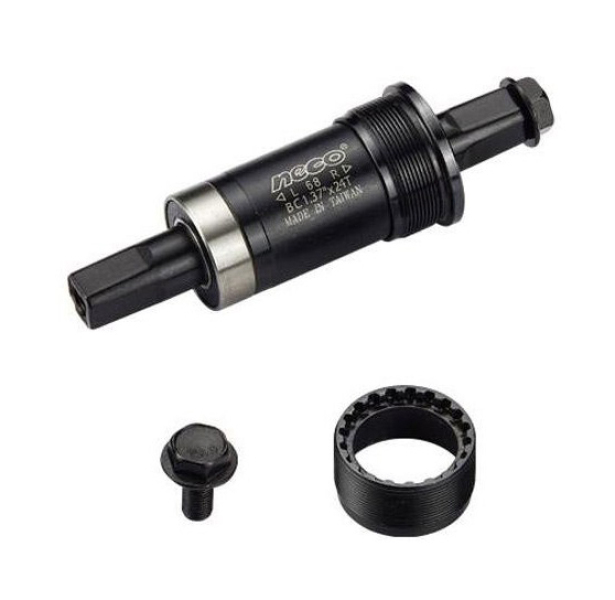 Neco B910 - стандартная каретка начального уровня для городских, прогулочных и горных велосипедов. Совместима с кареточными стаканами шириной 68 мм, с системами под квадратный вал, с шириной вала 118 мм. Оснащена стальными чашками корпуса и осью, двумя промышленными подшипниками с дополнительным плотным защитным пыльником, гайками для фиксации шатунов.
