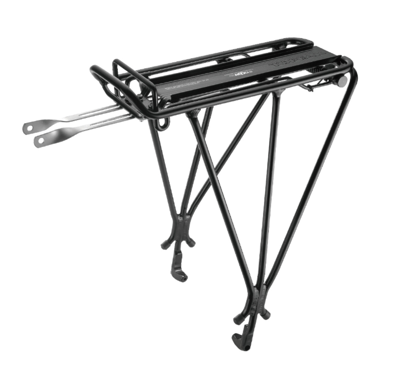 Универсальный, надежный и качественный багажник Explorer Disc от известного американского бренда Topeak , порадует каждого любителя велосипедной езды и путешествий. Багажник выполнен из авиационного алюминия серии 6061 Т6, что делает его не только очень прочным, но и достаточно лёгким. Крепление багажника осуществляется на болтовое крепление к раме и позволяет установить его на велосипеды с диаметром колес от 26" до 29" дюймов, оборудованных дисковыми тормозами. Не регулируемые стойки багажника позволяют сохранить жесткость и препятствуют разбалтыванию даже на сложном рельефе. Багажник имеет пружины и фиксатор груза, совместим с любыми моделями вело-сумок и рюкзаков, а также с сумками Topeak MTX TrunkBag, оснащенными системой крепления QuickTrack и вело-корзинами. В задней части багажника имеется дополнительное крепление RedLite для установки светоотражающего элемента или фонаря. Максимальная нагрузка багажника до 26 кг подразумевает также установку детского кресла. Важно: данная модель не рекомендуется производителем для установки на карбоновые рамы.