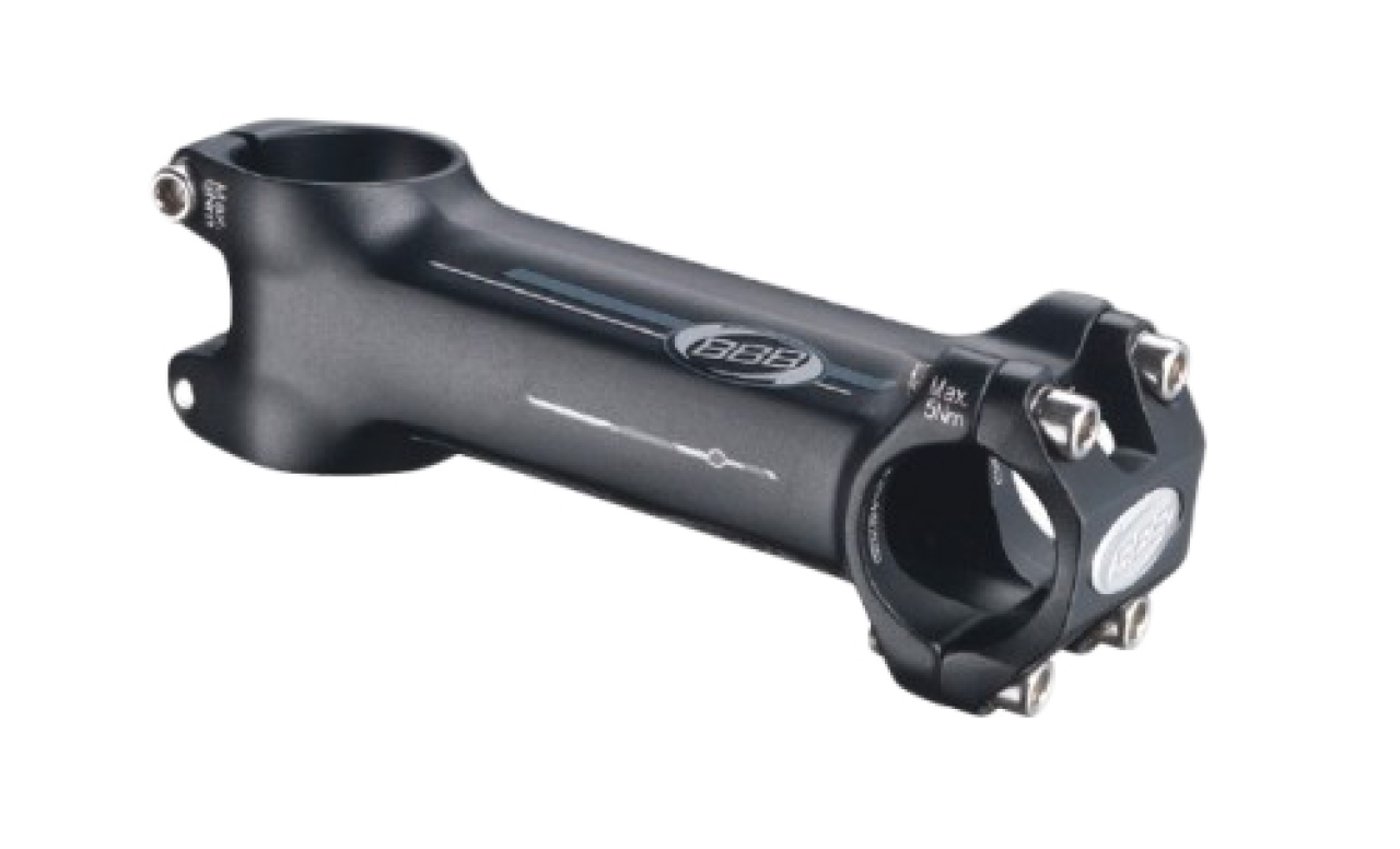 BBB MountainForce BHS-03 - прочное исполнение с низким весом, от популярного бренда запчастей и аксессуаров. Найдет оптимальное применение в активных и скоростных MTB направлениях, но, в виду универсальной конструкции, также подойдет и для городских велосипедов. Корпус из кованного алюминия серии 2014-Т6, болты из прочной, нержавеющей стали. Вынос рассчитан на рулевые штоки 1 1/8" и для рулей с диаметром 25,4 мм. Шток прижимается двумя разнонаправленными болтами, руль -четырьмя. Конструкция корпуса способствует грамотному распределению усилия затяжки на шток и плотной посадки выноса. Длина по точкам крепления 80 мм, подъем, в зависимости от положения, + (или-) 6 градусов. Имеет черное покрытие с неброскими логотипами бренда.