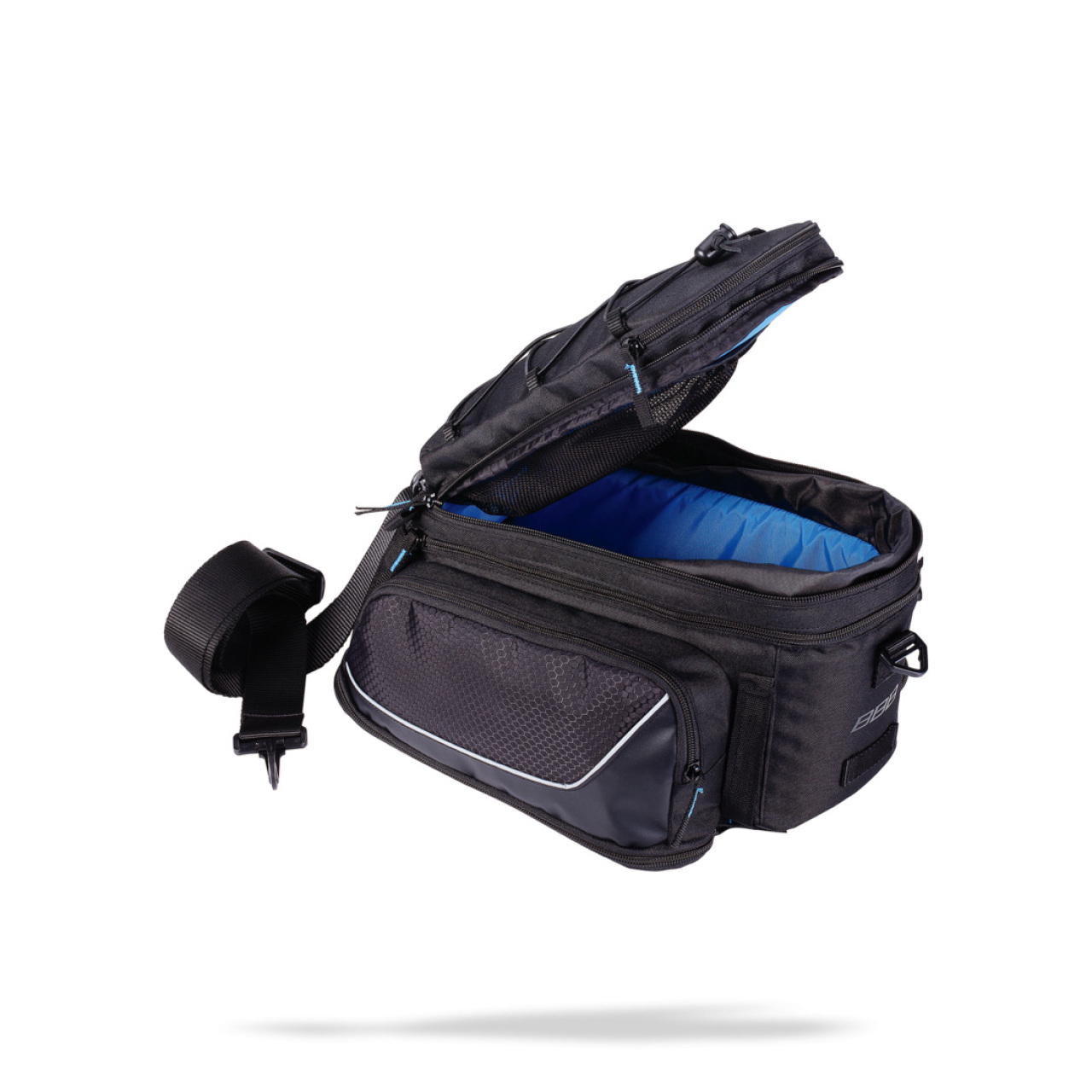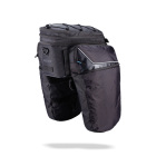 Сумка для велопутешествий от Голландской компании BBB, специализирующейся на производстве аксессуаров и велозапчастей. Выполнена из нейлона, тарпаулина и полиэстера. Имеет большое основное отделение с функцией увеличения объема, при помощи расстегивания дополнительной молнии. Изнутри подкладка ярко-синего цвета для быстрого поиска предметов, а под ней уплотнитель из пены. В основном отделении расположен маленький карман, сетчатый карман имеется на крышке сумки и карабин для ключей. По бокам два дополнительных отсека, которые разворачиваются, что позволяет увеличить объем сумки, практически вдвое. По корпусу нанесены световозвращающие элементы, которые способствуют безопасности передвижения в темное время суток. На фронтальной части имеется ремень для крепления габаритного фонаря. Сумка крепится на багажник 4-мя ремнями на липучках, которые жёстко фиксируются, и не дают ей перемещаться по сторонам (ремни velcro). В комплекте имеется наплечный ремень, который регулируется по длине. Совместима с накидкой от дождя и грязи (BSB-96).