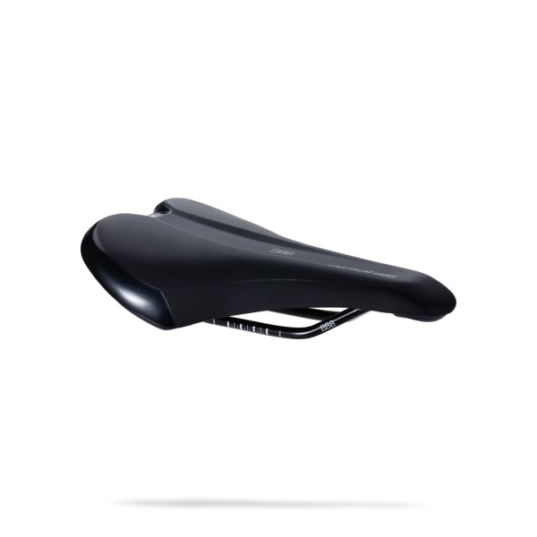 BBB Spectrum Short BSD-130 – легкое и технологичное седло для MTB велосипедов. В виду конструкции и размеров станет оптимальных решением для спортивных MTB и гравийный направлений байков под райдеров с небольшим ростом и подросткам. Седло обладает габаритами 145х245 мм и весом в 310 грамм. Каркас седла выполнен из пластика, армированного стекловолокном. Рельсы выполнены из упругой стали, имеют шкалу для настройки положения. Они также имеют стандартную длину и ширину, что позволит установить седло на любой тип подседельного штыря и свободно отрегулировать в комфортное положение. Седло имеет анатомическую конструкцию корпуса и пенки со специальной центральной выемкой и прорезиненной полоской. В сочетании оно позволяет снять напряжение и дискомфорт лобковой зоны, а также дать комфортно при педалировании на сложном и продолжительном маршруте. Покрытие выполнено из износостойкой, тонкой синтетической ткани, устойчивой к любым погодным условиям. Выпускается в универсальном черном цвете и подойдет как для мужчин, так и для девушек.