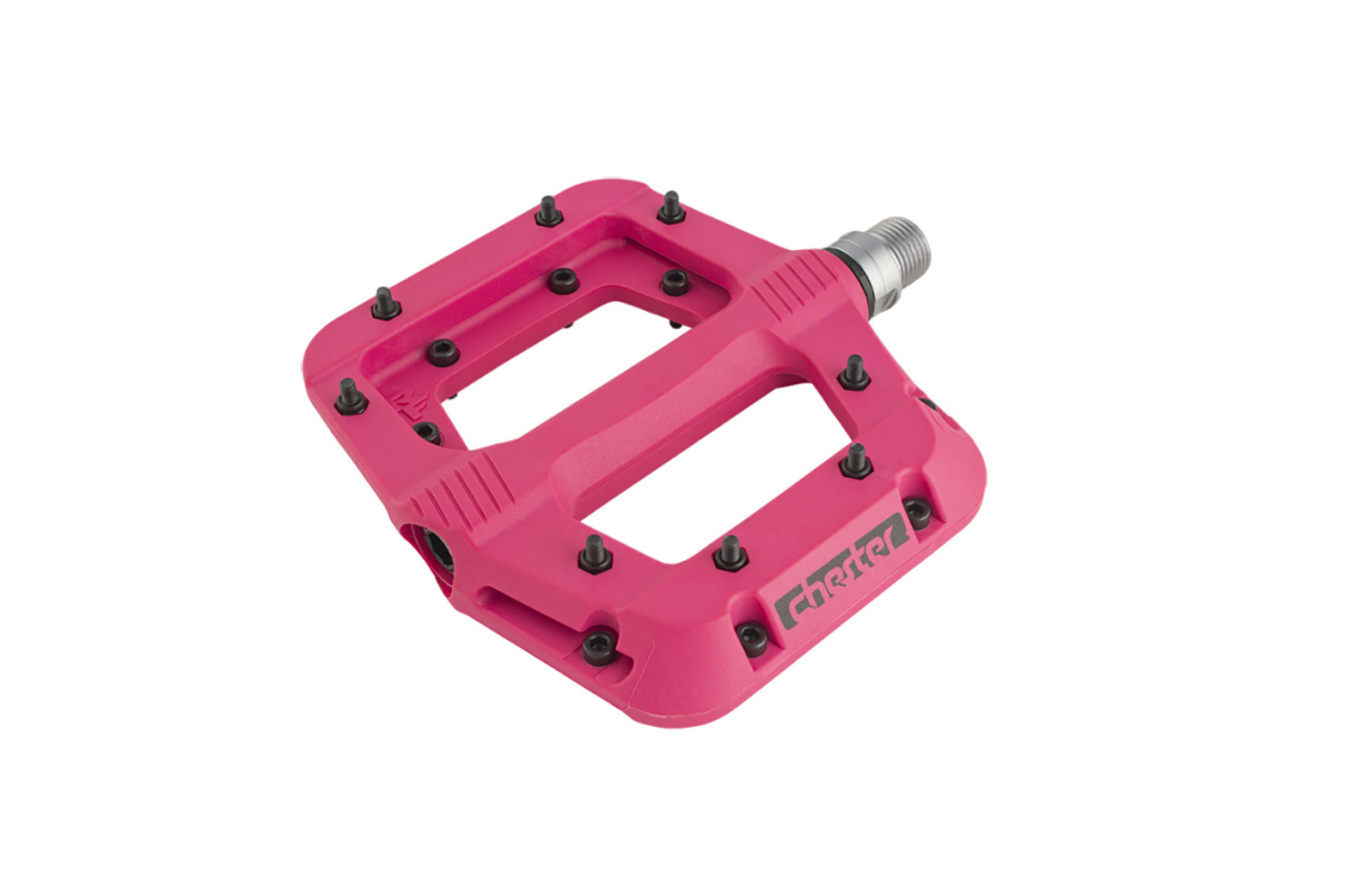 Педали Race Face Chester - профессиональный и не дорогой элемент для активного, экстремального, агрессивного и жесткого катания в MTB дисциплинах. Корпус педалей выполнен из нейлона, армированного стекловолокном. Собраны с использованием промышленного подшипника и втулки скольжения, имеют стальную Cro-Mo ось серии 4140 с резьбой 9/16". Конструкция полностью обслуживаемая. 8 сменных шипов педали позволяют достигать отличного контакта со специализированной MTB обувью, а оптимальная ширина и длина платформы удобна при постоянной стойке на велосипеде. Среди своих одноклассников, обладает сравнительно низким весом при учете достаточно массивной конструкции. Габариты 110х101 мм. Вес педалей составляет 360 грамм в паре. Педали не комплектуются светоотражателями..