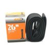 Прочная бутилкаучуковая камера CST для MTB, городских, комфортных и гибридных велосипедов. Обладает размером под колеса 26" и, за счет хорошей тягучести резинового состава, диапазоном ширины - от 1,75" до 2,125". Ниппель прямой, стандарт AV, рассчитан для установки с ободами под автомобильный ниппель (Schrader). Ниппель хорошо удерживает давление, резиновый состав имеет толщину стенки 0,87 мм, устойчив к проколам и легко поддается заклейке. Камера рассчитана на посадочный размер 47/57-559.