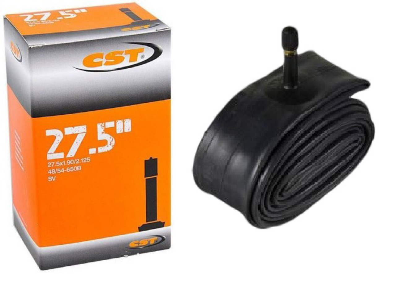 Прочная бутилкаучуковая камера CST для MTB, городских, треккинговых и гибридных велосипедов. Обладает размером под колеса 27,5" и, за счет хорошей тягучести резинового состава, диапазоном ширины - от 1,9" до 2,125". Ниппель стандарта AV, рассчитан для установки с ободами под автомобильный ниппель (Schrader). Ниппель хорошо удерживает давление, резиновый состав имеет толщину стенки 0,87 мм, устойчив к проколам и легко поддается заклейке. Камера рассчитана на посадочный размер 48/54-584.