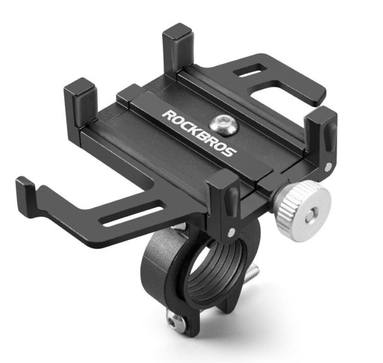 Держатель для смартфона 699-BK от компании Rockbros, производителя аксессуаров для велосипедов, высокого качества. Корпус выполнен из прочного алюминия, фиксация осуществляется за счет силиконовых накладок, которые защищают корпус телефона от царапин и потертостей. Предназначен для размещения телефонов шириной 55-95 мм. В комплекте держатель и шестигранный ключ для его установки и регулировки. Шарнирное крепление позволяет регулировать угол наклона устройства, вращается на 360 градусов, даёт возможность использовать телефон как в горизонтальном, так и в вертикальном режиме. Крепление осуществляется при помощи регулировочного винта, который фиксирует держатель на рулевых трубах диаметром от 22 до 31,8 мм. Весит аксессуар 130 г.