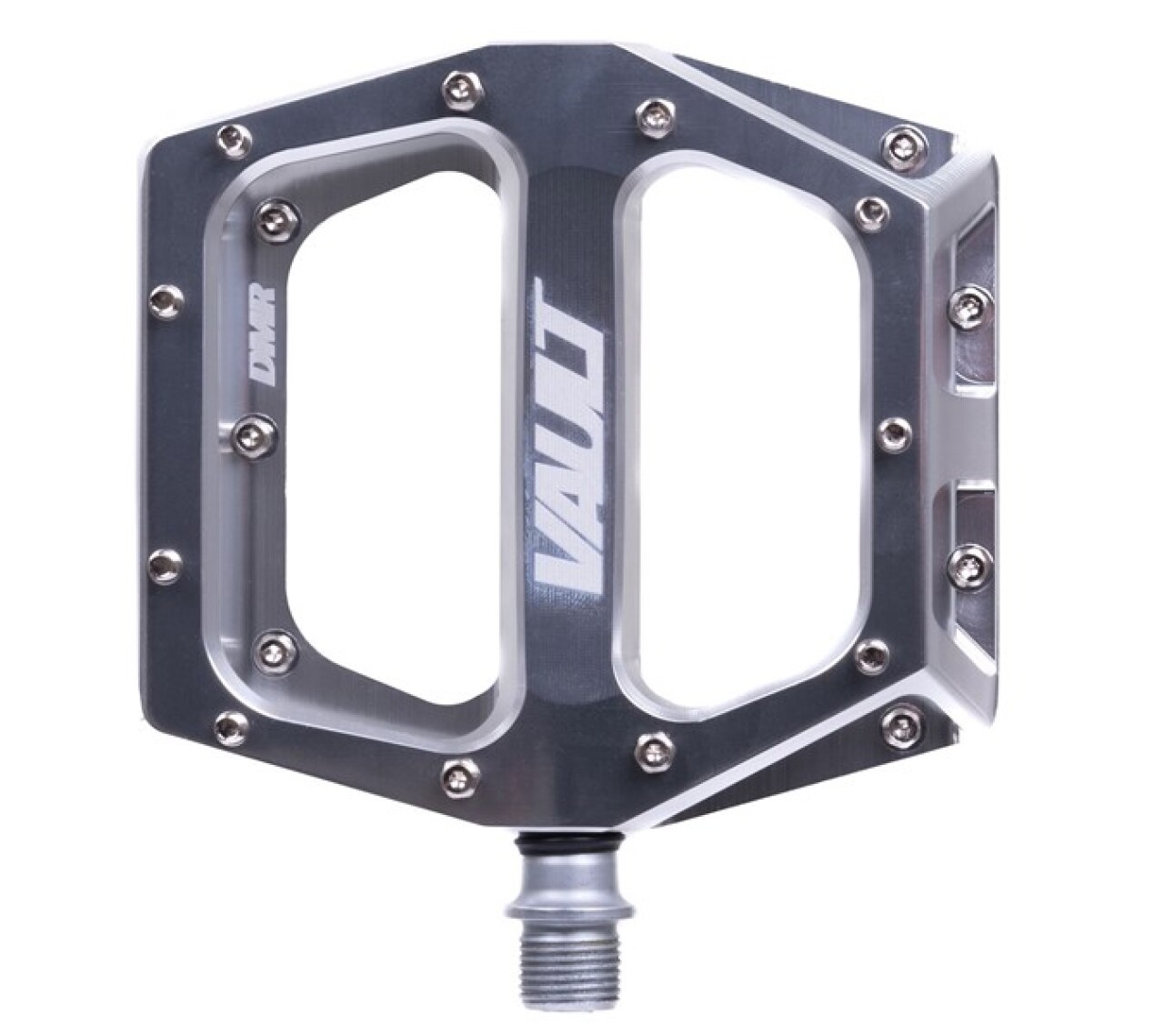 Педали DMR Vault – пожалуй одни из легендарных педалей созданные для настоящих ценителей экстрима. Данная линейка объединила в себе: прочность, надёжность и впечатляющий дизайн. Корпус педалей выполнен из высококачественного алюминиевого сплава серии 6061 и имеет размер платформы 105х105 мм. Ось из хром-молибденовой стали серии 4140 способна выдерживать колоссальные нагрузки обеспечивая долгий срок службы. За сцепление с подошвой отвечают 11 регулируемых по высоте и сменных шипов, которые будут удерживать стопу даже на самом сложном рельефе, в условиях повышенной влажности или сильного дождя.