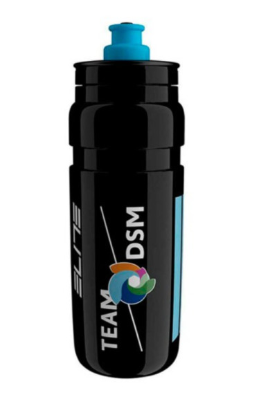 Фляга Elite Fly DSM, 750 мл - очень легкая спортивная бутылка для воды, которая была сконструирована для велосипедистов мирового уровня. Она поставляется с универсальным диаметром и подходит под любой флягодержатель. Бутылка с большим отверстием для быстрой и легкой заправки и очистки. Пластмасса используемая для неё не содержит BPA и не имеет запаха. Довольно мягкая, чтобы "выжать" бутылку для быстрого использования, именно во время езды на велосипеде.