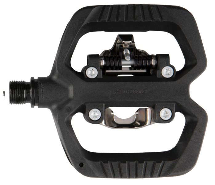 Педали Look Geo Trekking - это двусторонний вариант, позволяющий вам выбрать между поездкой на работу или быстрой тренировкой. Простая система регулировки позволяет устанавливать напряжение от 5 до 10 Нм. Педали оснащены световозвращающими элементами, обеспечивающими лучшую видимость и безопасность на дороге.