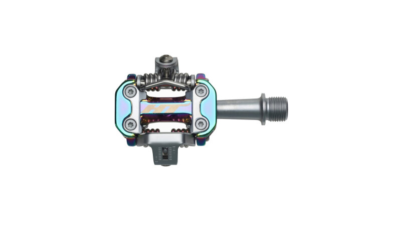 HT M2 Oil Slick Pedals - топовые педали от HT, разработанные для самых требовательных велосипедистов и спортсменов. Испытанные и протестированные на уровне Чемпионата Мира и Кубка Мира, эти педали использовались Чемпионами Мира Нино Шуртером и Кейт Кортни, и считаются одними из лучших вариантов контактных педалей для гонок кросс-кантри. Весом всего 305 грамм за пару, педали M2 изготовлены из экструдированного CNC-оптимизированного алюминия, обеспечивая идеальное соотношение прочности и веса. Педали M2 обладают классом мирового уровня по очистке от грязи, снега и льда, делая их идеальными для использования в любых погодных условиях. Они очень легко сцепляются и отцепляются, обеспечивая быстрое и эффективное защелкивание и освобождение. Кроме того, эти педали предлагают наиболее регулируемый двойной механизм защелкивания на рынке, позволяя настраивать педали в зависимости от трассы или условий на дороге. Вес педалей M2 составляет 305 грамм за пару, вес шипов - 64 грамма за пару. Размер педалей - 56 x 41 x 17.5 мм, они изготовлены из алюминия. Несовместимы со стандартом SPD от Shimano.