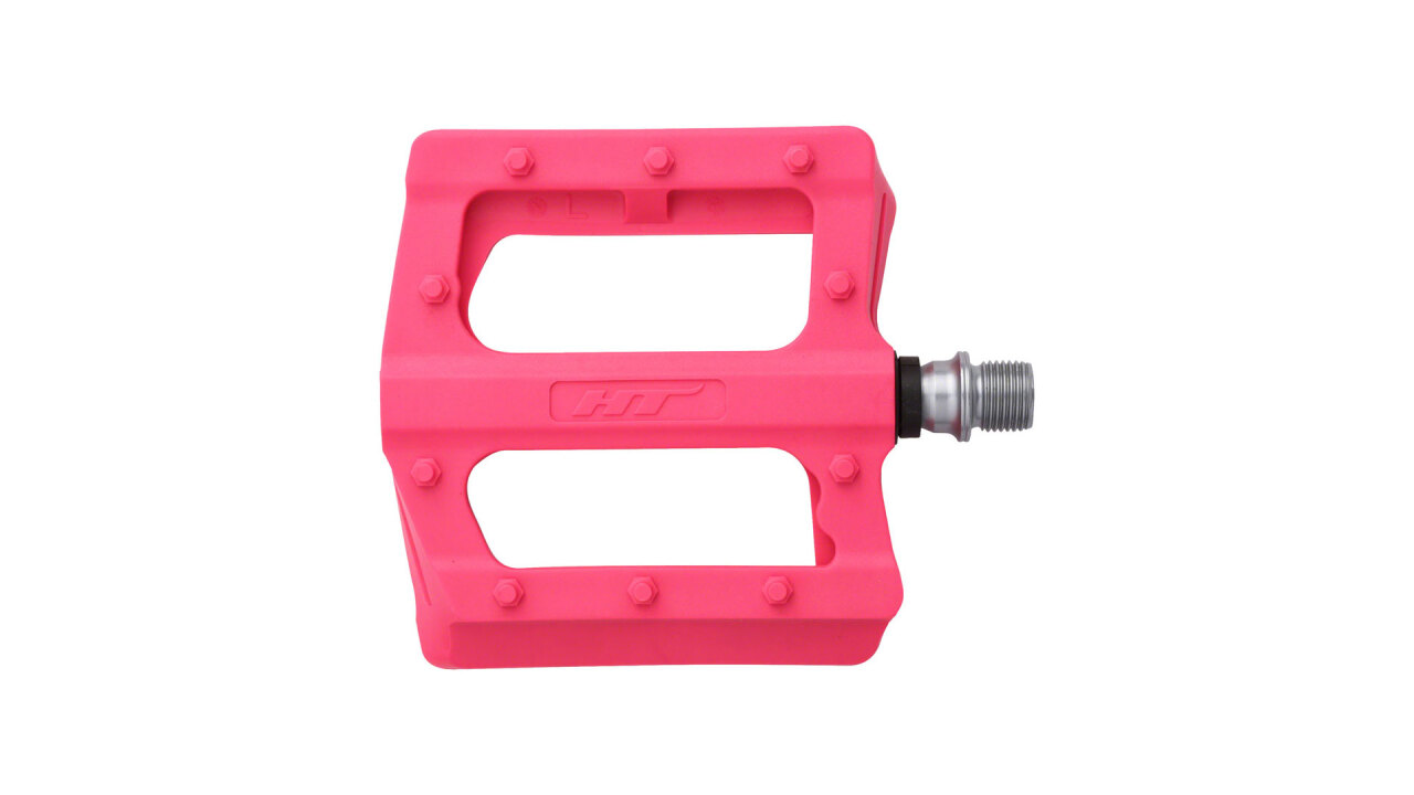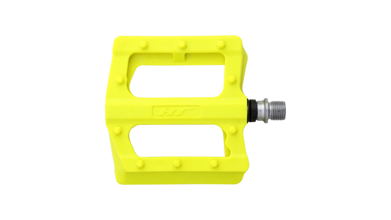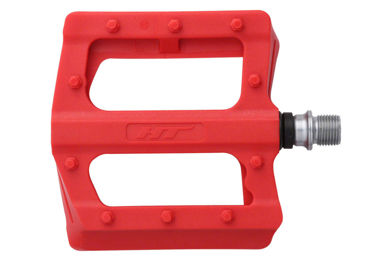 HT PA12 предлагает отличное соотношение цены и качества, а также низкопрофильный дизайн и отличный вес. Изготовленные из высокопрочного композитного нейлона, педали HT PA12 имеют размеры платформы 100х95х18 мм, при весе всего 320 грамм. они способны справиться с самыми суровыми условиями. Для обеспечения более плавной работы и длительной службы в педалях используются двойные герметичные промышленные подшипники закрытого типа и высококачественные втулки скольжения DU. Увеличенная ось диаметром 12 мм обеспечивает дополнительную прочность и жесткость. Десять литых шипов на каждой стороне педали обеспечивают отличное сцепление подошвы с педалью обеспечивая райдеру стабильность даже на самых сложных участках трассы.