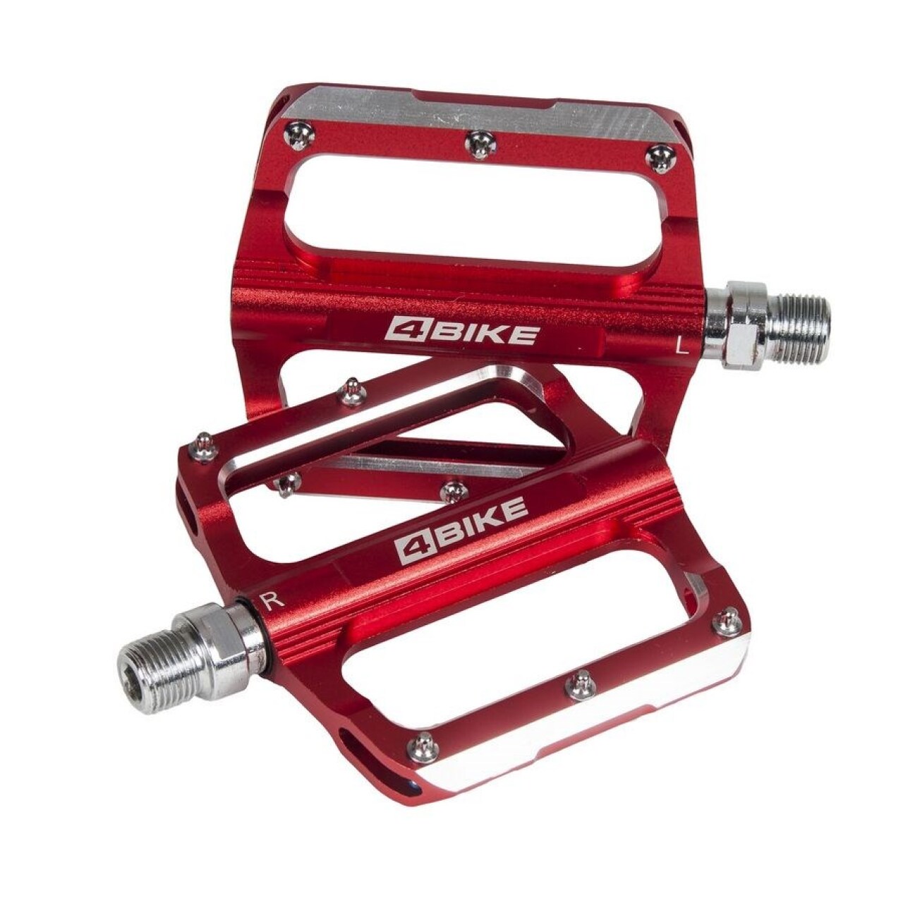 Педали 4BIKE K306 - элемент для любительского и полупрофессионального катания MTB дисциплин, в городе и на пересеченной местности. Корпус педалей выполнен из алюминия, собраны с использованием двух промышленных подшипников и втулки скольжения, имеют Cro-Mo ось с резьбой 9/16". 12 сменных шипов педали позволяют иметь хороший контакт с обувью, а внушительная ширина платформы удобна при постоянной стойке на велосипеде. Среди своих одноклассников, обладает сравнительно низкой высотой платформы, габариты 120х100х18 мм. Вес педалей составляет 346 грамм в паре. Педали не комплектуются светоотражателями.