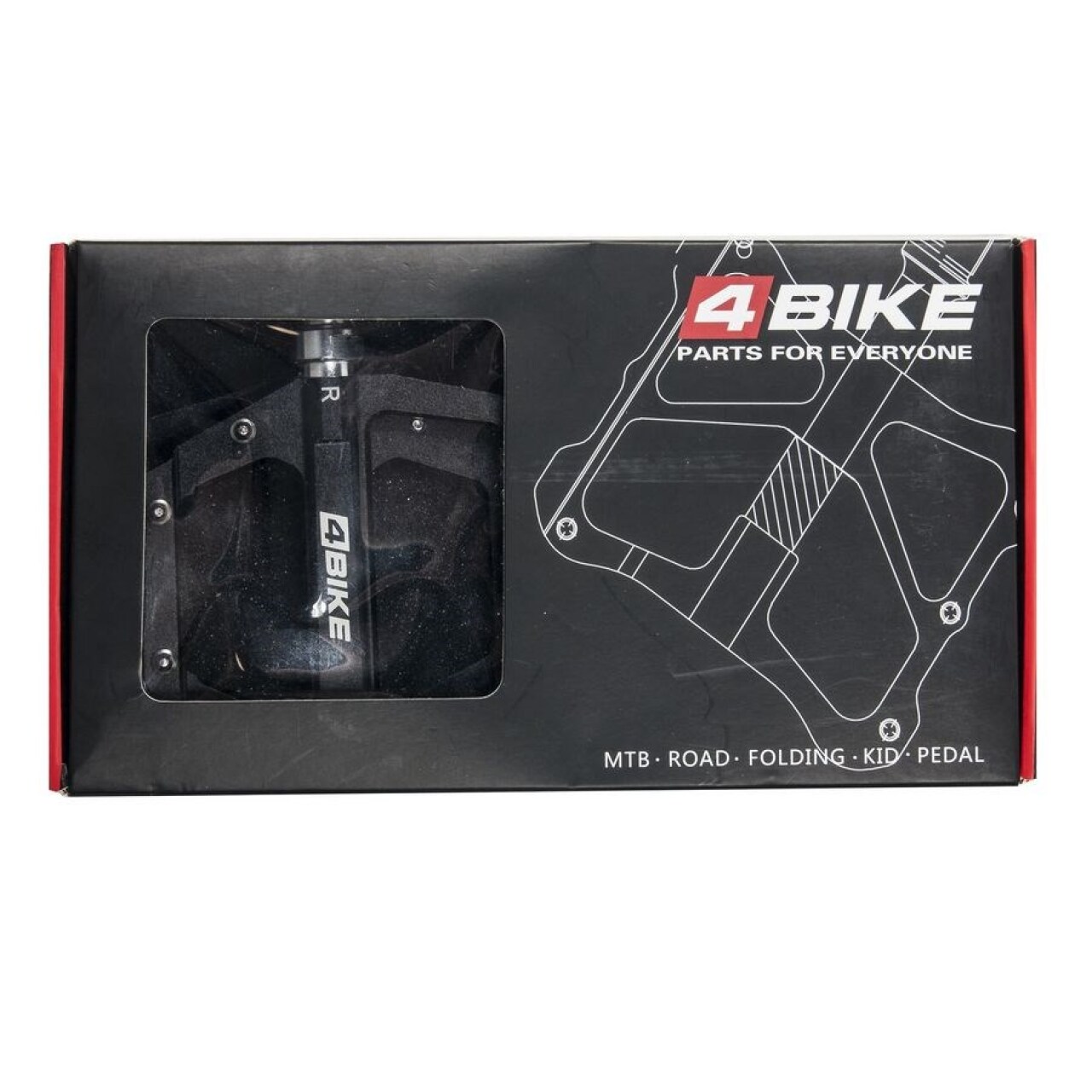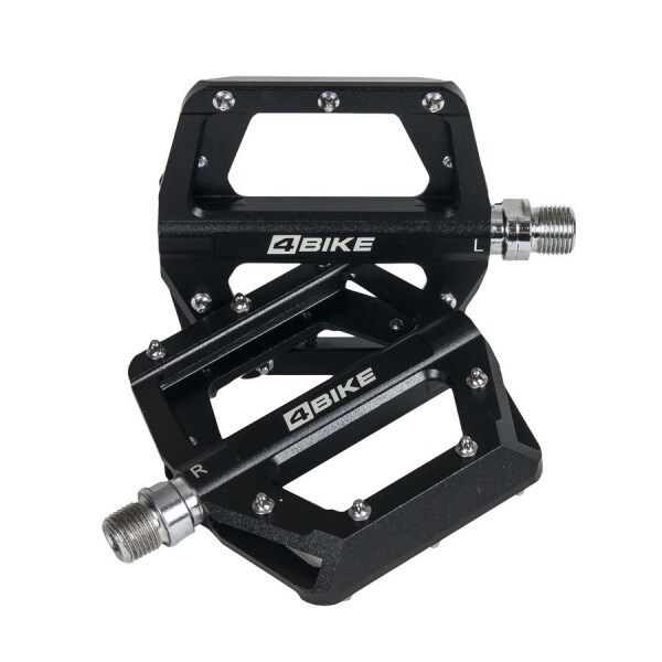Педали 4BIKE K313 - элемент для любительского и полупрофессионального катания MTB дисциплин, в городе и на пересеченной местности. Корпус педалей выполнен из алюминия, собраны с использованием двух промышленных подшипников и втулки скольжения, имеют Cro-Mo ось с резьбой 9/16". 14 сменных шипов педали позволяют иметь хороший контакт с обувью, а внушительная ширина платформы удобна при постоянной стойке на велосипеде. Среди своих одноклассников, обладает сравнительно низкой высотой платформы, габариты 120х98х16 мм. Вес педалей составляет 365 грамм в паре. Педали не комплектуются светоотражателями.