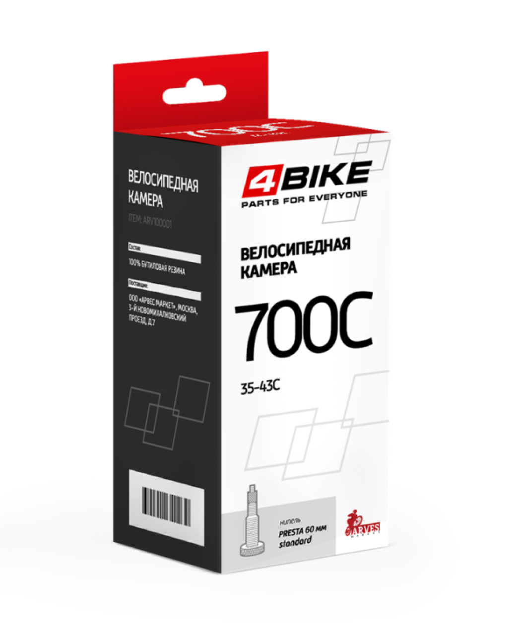 Камера 4Bike 700Cx35/43C, A/V, 60 мм.