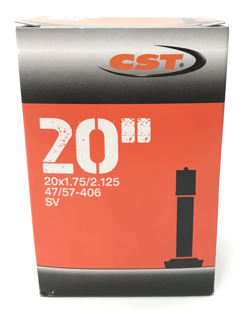 Прочная бутилкаучуковая камера CST для детских и складных велосипедов, также некоторых самокатов. Обладает размером под колеса 20" и, за счет хорошей тягучести резинового состава, диапазоном ширины - от 1,75" до 2,125". Ниппель прямой, стандарт AV, рассчитан для установки с ободами под автомобильный ниппель (Schrader). Ниппель хорошо удерживает давление, резиновый состав имеет толщину стенки 0,87 мм, устойчив к проколам и легко поддается заклейке. Камера рассчитана на посадочный размер 47/57-406.