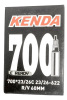 Прочная бутил-каучуковая камера Kenda для шоссейных и трековых велосипедов. Обладает популярным размером 700С и, за счет хорошей тягучести резинового состава, внушительным диапазоном ширины от 18С до 25С. Рассчитана для установки с ободами под велосипедный ниппель (Presta). Ниппель имеет длину 60 мм, хорошо удерживает давление, легко поддается заклейке в случае прокола.