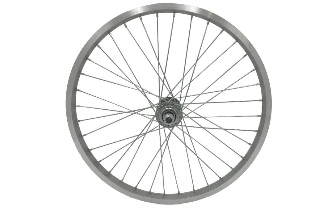 Колесо заднее Stels, в сборе, готовое к установке. Имеет стандартный размер для покрышек 20", располагает к оптимальному диапазону ширины от 1.75 до 2.25". Подойдет для детских и складных велосипедов, является штатной деталью к моделям Pilot 450 и Pilot 350. Рассчитано для установки трещотки на 6-7 скоростей, под ободную тормозную систему V-brake, для перьев шириной 130 мм. (O.l.d). Втулка оснащена 2-мя насыпными подшипниками. Корпус сборный и выполнен из стали, ось выполнена также из стали, имеет диаметр 10 мм, фиксация на гайках. Спицы стандартные 2 мм из стали. Обод с одной стенкой и усилением, алюминиевый, с тормозной дорожкой для V-brake, без индикатора износа, не пистонированый, на 32 спицы. Втулка, спицы и обод выполнены в хромированном цвете. Стоит заметить, что колесо полностью готово к установке -собрано и протянуто, но в сборку не входят: ободная лента, камера, покрышка и трещотка.