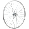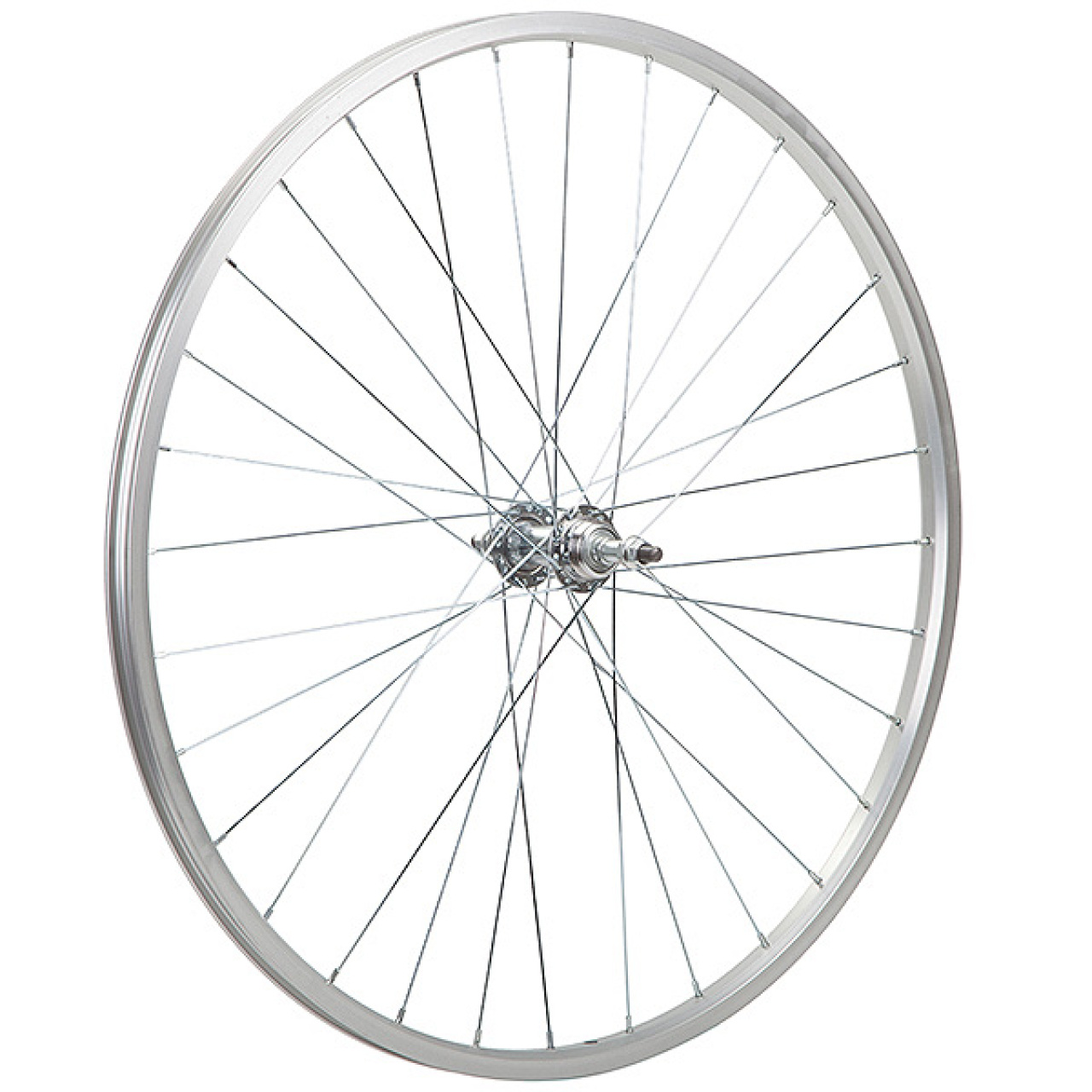 Колесо заднее в сборе, готовое к установке. Имеет распространенный размер 28". Оптимально рассчитано для городских, гибридных, треккинговых, туринговых велосипедов. Рассчитано для установки с трещотками на 6-8 скоростей и в рамы с шириной меду перьями 130 мм. (O.l.d). Втулка SF A03R оснащена стальным корпусом с 32 отверстиями, промышленными подшипниками, креплением тормозного ротора на 6 болтов. Ось выполнена из стали, фиксируется гайками. Спицы стандартные стальные 2 мм 14G. Обод алюминиевый с одной стенкой, с тормозной дорожкой для ободных тормозов, не пистонированный, ширина внешняя 25 мм, внутренняя 19 мм. Оптимальным сочетанием будут покрышки с шириной до 2.1", поддерживает колесо оптимальную нагрузку до 100 кг. Выпускаются колеса с серебристым ободом и хромированными спицами и корпусом втулки. Стоит заметить, что колесо полностью готово к установке, оно собрано и протянуто. В сборку не входят: ободная лента, камера, покрышка, трещотка.