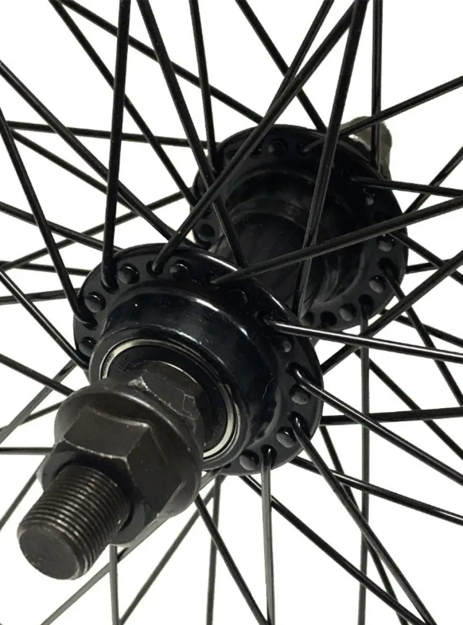 Переднее колесо в сборе Trix 20" отличное решение для усовершенствования BMX велосипеда. Данное колесо имеет превосходный накат благодаря втулке на промышленных подшипниках, так же прочная ось на 14мм никогда не выйдет из строя, даже при экстремальных ударных нагрузках. Корпус втулки выполнен из фрезерованного алюминия, большую галочку к прочности так же ставят спицы, их на этом колесе 48 штук, прочнее не бывает. За облегчение выступает алюминиевый одинарный обод с четырьмя ребрами жесткости. Данное колесо используется с автомобильным ниппелем.