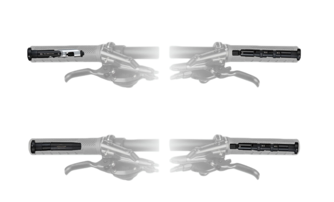 Plug'N Tool Mountain Pro от премиального бренда Topeak пожалуй самый лучший набор инструментов интегрируемый в руль вместо баренд (заглушек руля). Установка производится сразу с двух сторон интегрируемыми корпусами из стеклопластикового композита. В корпуса вмещаются: набор шестигранных ключей выполненных из закалённой стали 3, 4, 5, 6, 10 мм, Torx® T25, шило 3,5 мм с жгутами для ремонта бескамерных покрышек и выжимка цепи совместимая с цепями до 13 скоростей. Корпусы совместимы с внутренним диаметром рулей Ø18 - 21,2 мм, максимальная длина 128 мм. Для быстрого доступа к отсекам с инструментами на торце имеется откидная ручка, которой удобно пользоваться даже в перчатках.