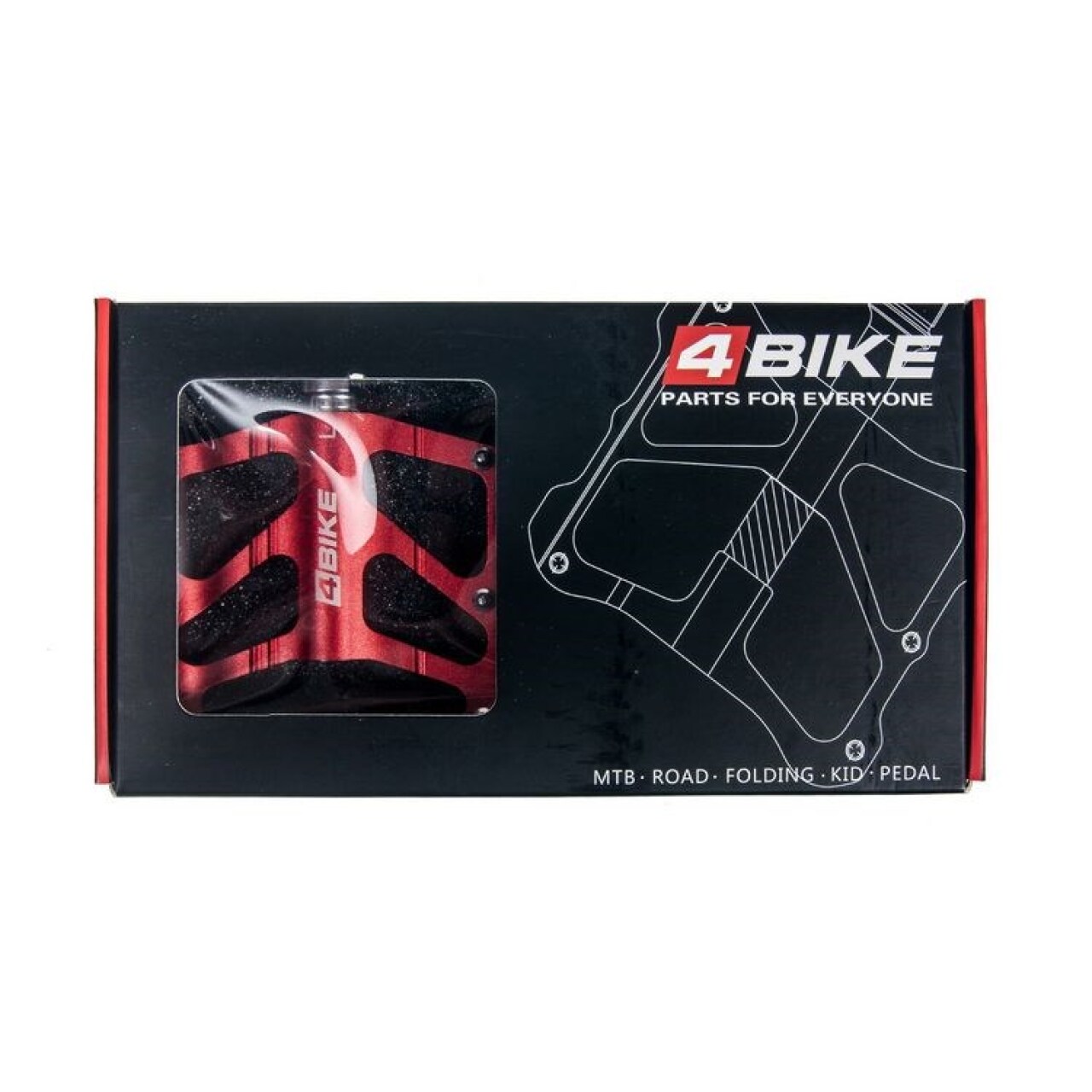 Педали 4BIKE K304 - элемент для любительского катания MTB и городских дисциплин. Корпус педалей выполнен из алюминия, собраны с использованием двух промышленных подшипников и втулки скольжения, имеют Cro-Mo ось с резьбой 9/16". 12 сменных шипов педали позволяют иметь хороший контакт с обувью, а оптимальная ширина платформы удобна при постоянной стойке на велосипеде. Среди своих одноклассников, обладает сравнительно низким весом. Габариты 118х98х18 мм. Вес педалей составляет 360 грамм в паре. Педали не комплектуются светоотражателями.