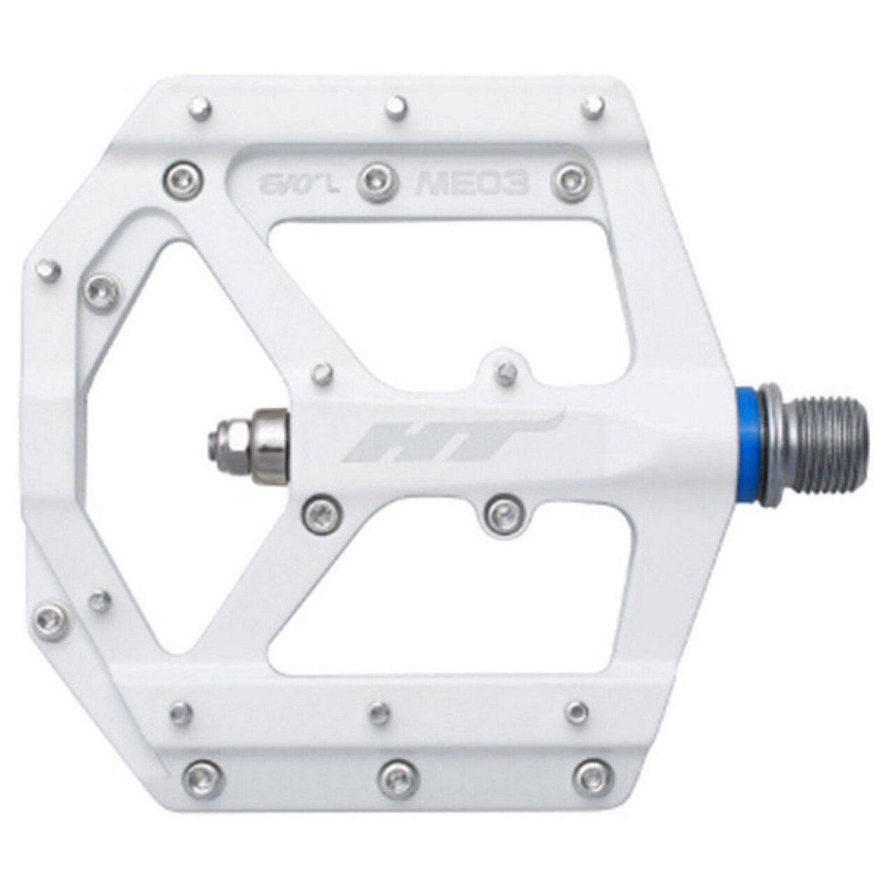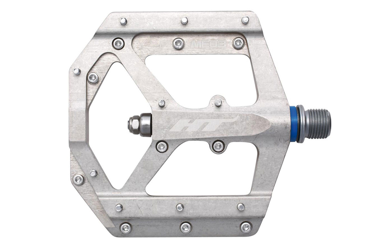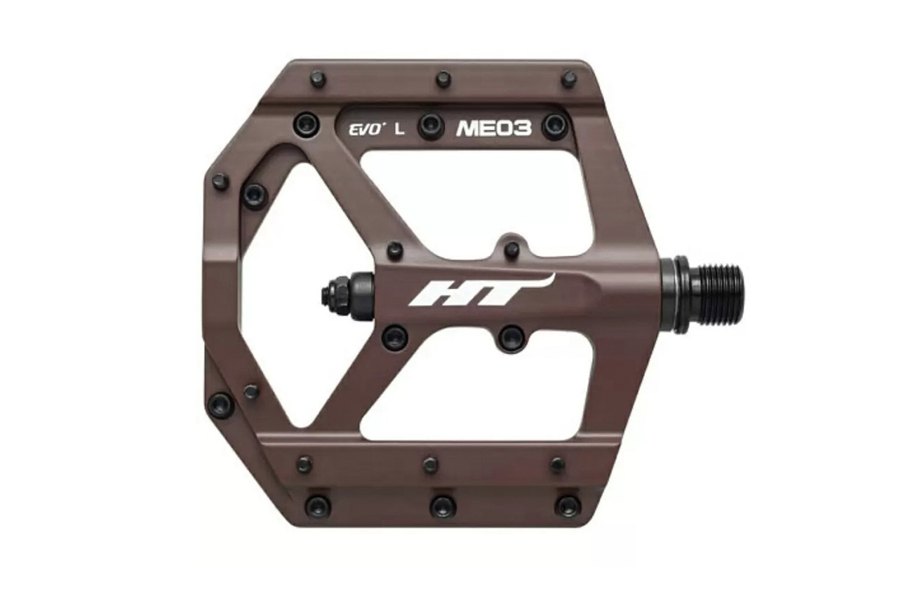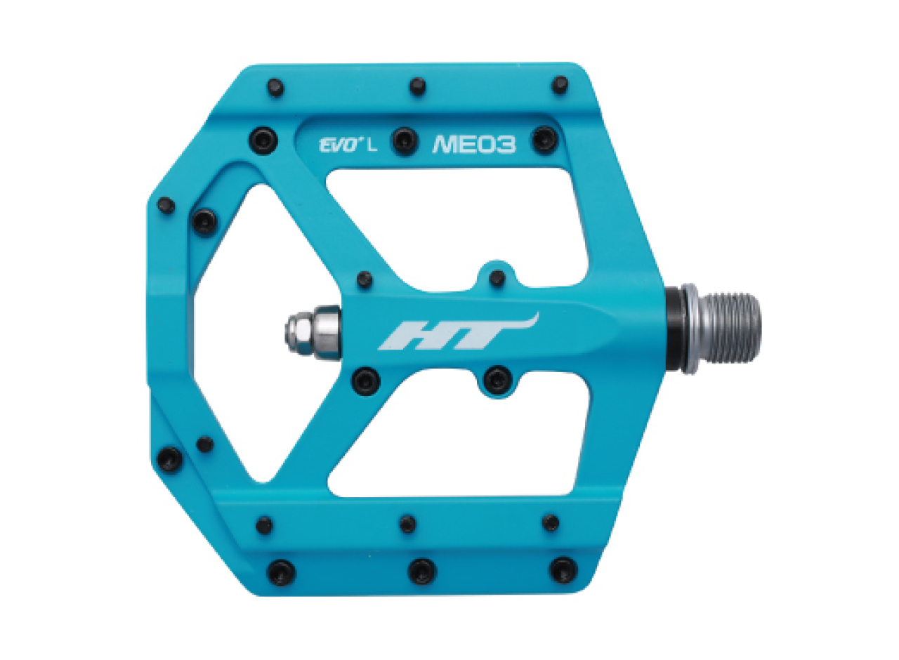 ME03 - самая выносливая и легкая модель педалей бренда HT для агрессивного, сурового катания в MTB дисциплинах. Корпус педалей выполнен из магниевого сплава с применением ЧПУ обработки. Собрана платформа с использованием технологии EVO + - втулки скольжения IGUS работают в паре с упорным подшипником, что дает легкую плавность вращения и высокую устойчивость к влаге, пыли, грязи, ударным нагрузкам. Корпус фиксируется на Cr-Mo ось, выполненную с CNC обработкой и имеющую стандартную резьбу 9/16". К тому же в своем сегменте обладает уверенными преимуществами - вес пары 260 грамм, низкий профиль, площадка размером 102 х 96 мм, 20 сменных шипов на одну педаль. Оптимальный контакт и уверенную стойку на педалях получиться достичь при использовании специализированной, бесконтактной MTB обуви. Несовместимы со стандартом SPD от Shimano. Педали не комплектуются светоотражателями и в продажу поступают в различных цветах.