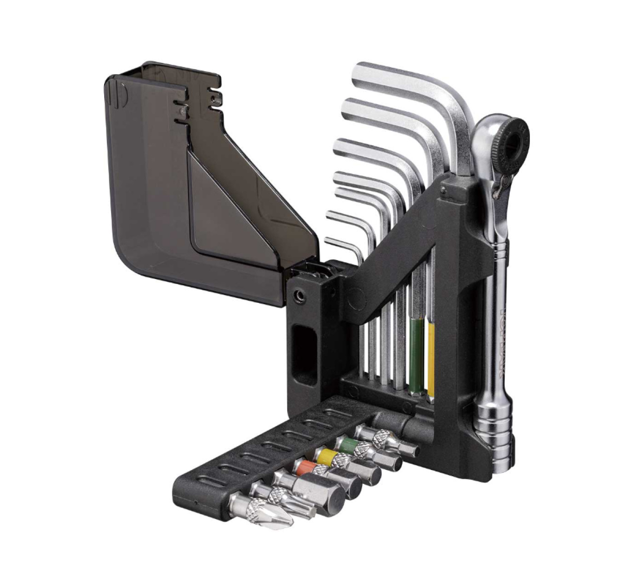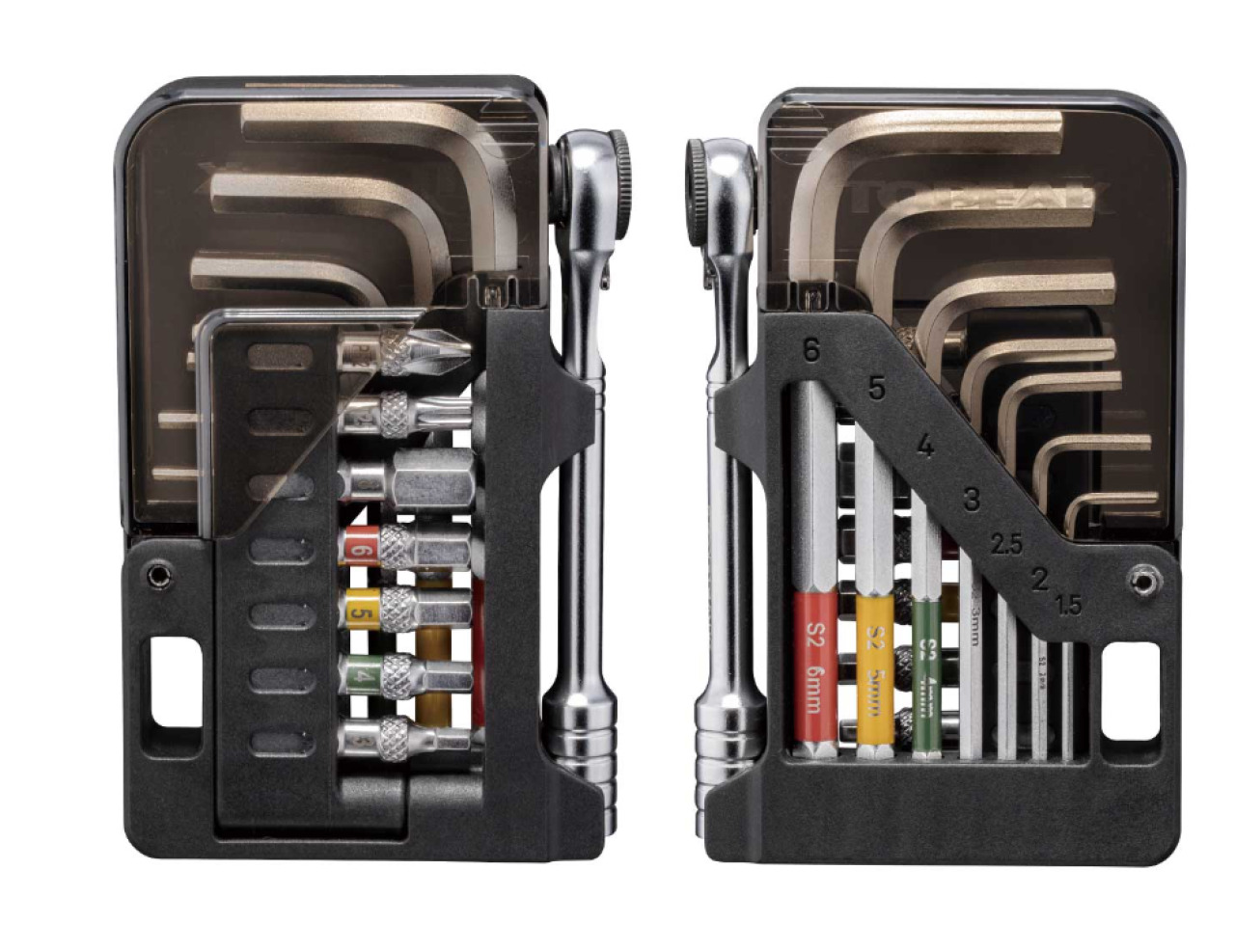 Topeak Omni Toolcard - компактный и функциональный набор инструментов, обеспечивающий удобство ремонта и обслуживания велосипеда в дороге. Инструменты выполнены из закаленной стали, что обеспечивает надежность в использовании. В наборе присутствует 15 инструментов, включая клющ-трещотку и биты на 30 мм, а также шестигранные ключи с размером от 1,5 до 6 мм. Дополнительно в комплектацию входит компактный органайзер, с помощью которого можно удобно хранить инструмент.