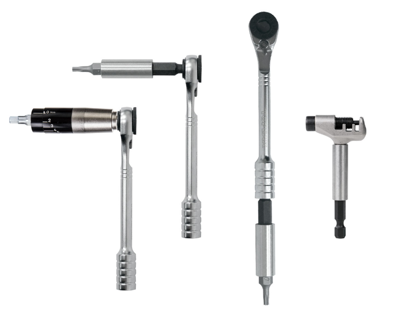 Набор инструментов Topeak Ratchet Rocket Lite NTX+и на 19 функций - современное и удобное решение для любого райдера и веломеханика. Этот комплект представляет собой совокупность максимально необходимых инструментов, а также динамометрическую рукоятку с диапазоном усилия от 2 до 6 Нм, чего отлично будет хватать для оперативного обслуживания велосипеда в дороге. Набор включает 19 инструментов, шестигранные биты от 2 до 8 мм, биты стандарта Torx в размерах T10, T15 и T25, крестовую отвертку, а также выжимку цепи для 1-12 скоростных моделей. Держатель бит в данной модели магнитный, что более удобно в использовании. В комплектации присутствует защитный футляр для аккуратного хранения.
