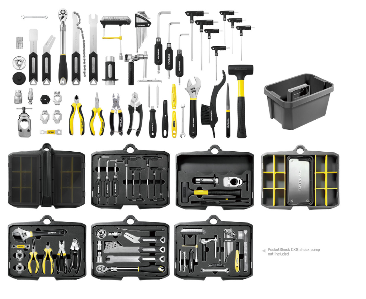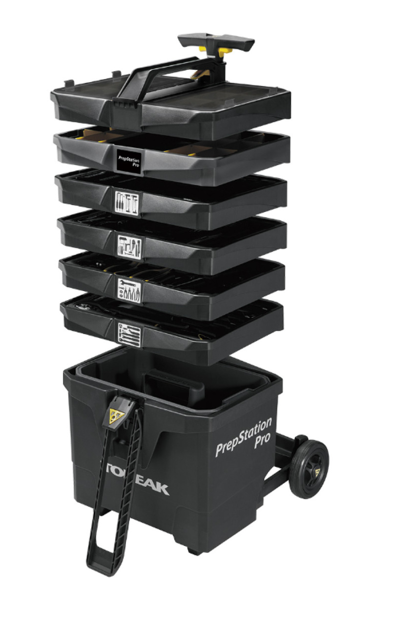 Набор инструментов в пластиковом ящике-органайзере Topeak Prepstation Pro - это полноценная рабочая станция, которая станет отличным решением в качестве переносной мастерской, или специально выделенным рабочим местом в условиях дома или гаража. В наборе есть всё необходимое для ремонта велосипеда: семь отсеков с инструментами, которые можно взять с собой. Всего в наборе 85 инструментов, которые помогут вам справиться с любым ремонтом. Ящик оснащён колёсами диаметром 5 дюймов, что позволяет легко перемещать его с места на место. В наборе есть всё, что нужно для ремонта велосипеда: инструмент для снятия цепи на 1–12 скоростей, ключи Torx от T7 до T30, шестигранные ключи от 2 до 10 мм, инструменты для монтажа покрышек, два спицевых ключа и четыре отвёртки. Все инструменты сделаны из хром-ванадиевой стали, которая отличается высокой прочностью.