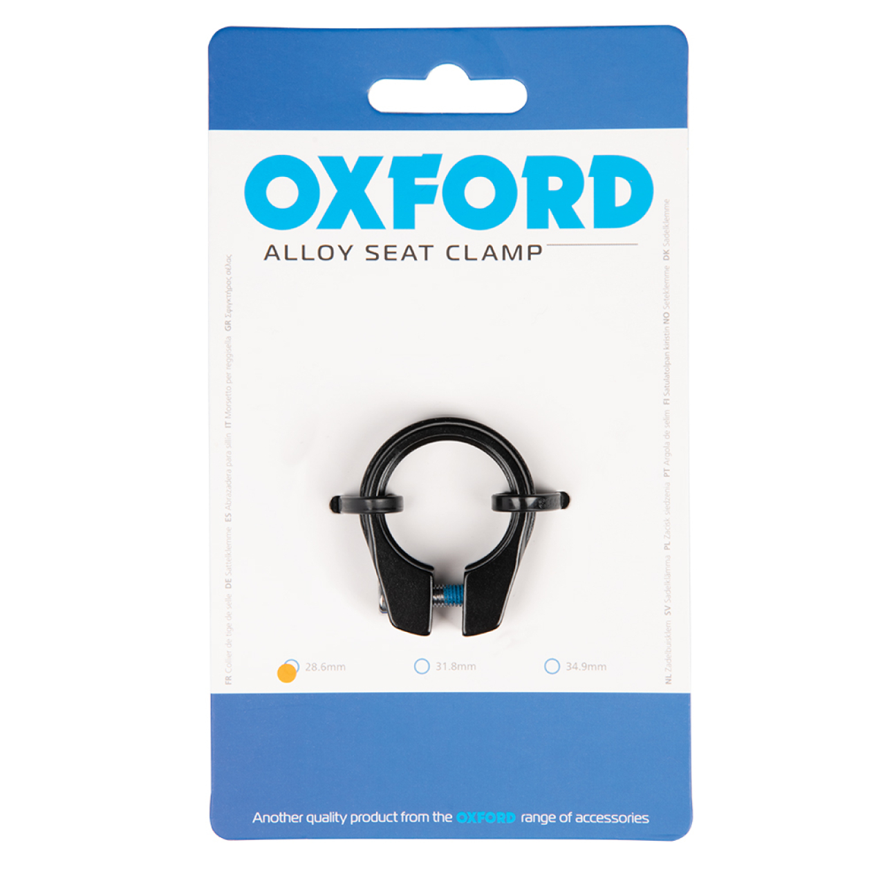 Oxford Seat Clamp — это облегченный и прочный подседельный хомут для подседельных штырей диаметром 28,6 мм. Модель изготовлена из качественного алюминия и фиксируется при помощи шестигранного болта. Хомут имеет анодированное черное покрытие и отлично сочетается с любым дизайном велосипеда. Oxford Seat Clamp совместим с любыми типами велосипедов будь то горный, городской или дорожный вариант. Надежный и удобный в использовании данный хомут представляет собой идеальный выбор для тех, кто ценит комфорт и надежность.