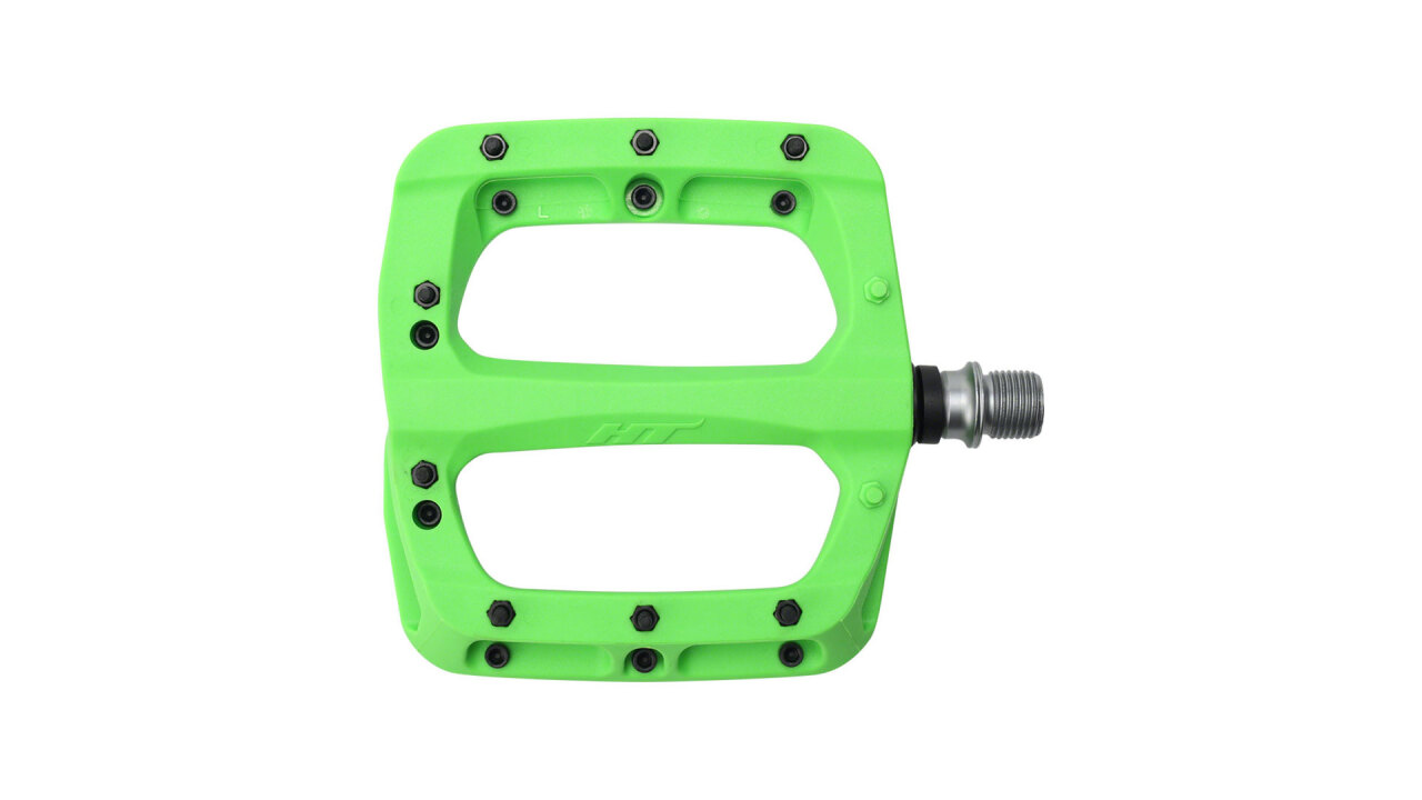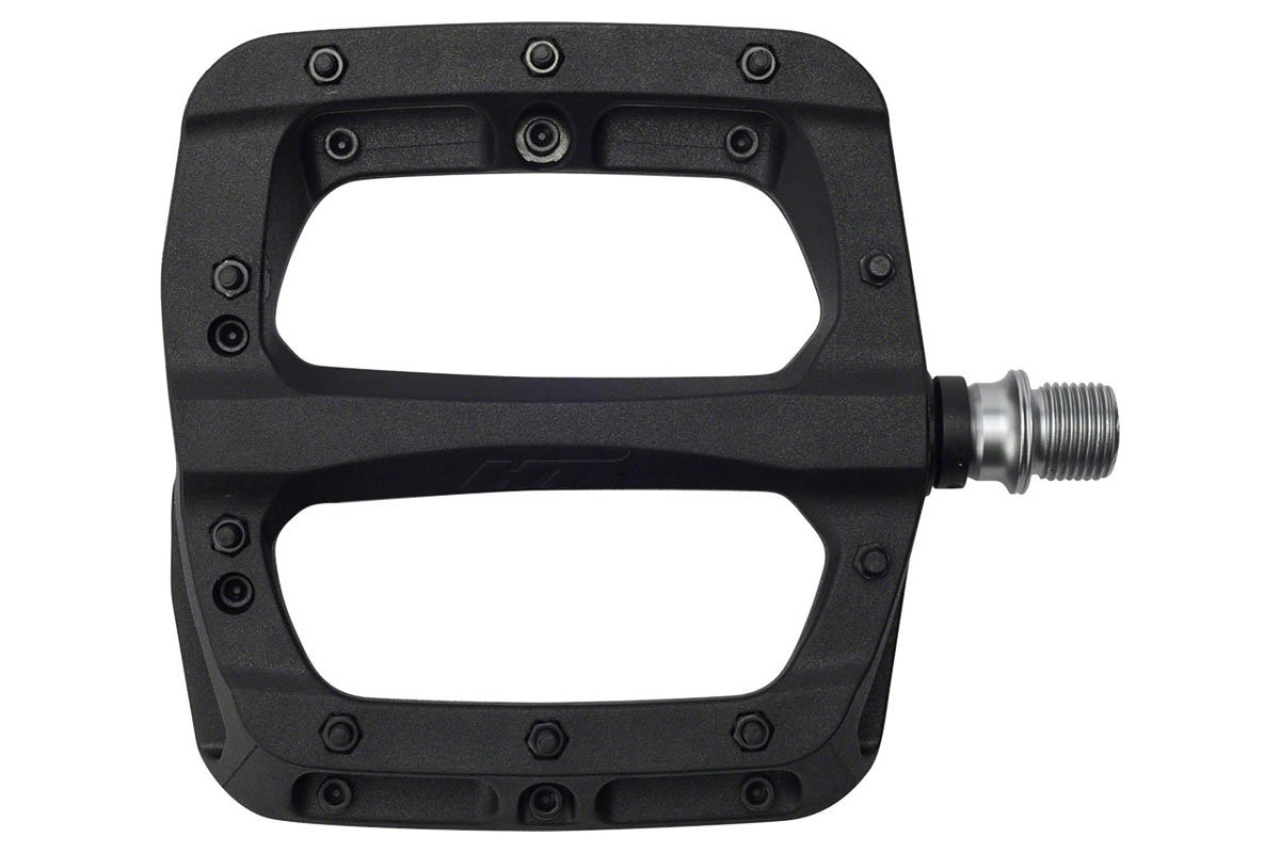 HT PA03A - недорогое и надежное решение для активного катания в MTB дисциплинах с постоянными прыжками и жесткими приземлениями. Станет отличным вариантом для для любителей трейла, фрирайда, дёрта и слоупстайла. Корпус педалей выполнен из крепкого нейлона. Собрана с использованием двух промышленных подшипников и втулки скольжения, что дает легкую плавность вращения и высокую устойчивость к влаге, пыли, грязи, ударным нагрузкам. Корпус фиксируется на Cr-Mo ось, выполненную с CNC обработкой и имеющую стандартную резьбу 9/16". Вес пары 345 грамм, средняя высота профиля, площадка размером 107 х 105 мм, 4 монолитных и 16 сменных шипов на одну педаль. Оптимальный контакт и уверенную стойку на педалях получиться достичь при использовании специализированной, бесконтактной MTB обуви. Педали не комплектуются светоотражателями и в продажу поступают в различных цветах.