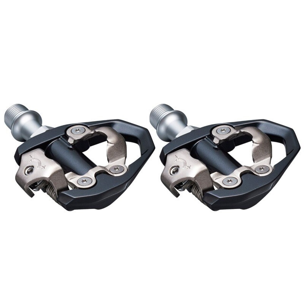 Shimano PD-ES600 - уникальная модель педалей серии Ultegra, которая точно придется по вкусу городским райдерам и путешественникам. Педали сочетают в себе преимущества шоссейного форм-фактора и удобство MTB педалей. Рамка корпуса выполнена из легкого алюминия, система зацепов из прочной стали. Рамка позволяет снизить аэродинамичное сопротивление воздуха при педалировании и комфортно поддержит стопу. Фиксируется корпус через герметичные подшипники на Cr-Mo ось, которые также в сочетании позволят долго и беспроблемно служить педалям в любых условиях. Система фиксации имеет стандартную регулировку усилия встегивания и выстегивания. Совместима она с фирменными шипами и аналогами стандарта SPD. Педали комплектуются пластиковыми шипами Shimano SM-SH51. Вес пары педалей сравнительно небольшой - 279 грамм. Оптимальным сочетанием станет фирменная обувь для MTB дисциплин и аналоги, например Shimano RX6 и XC5.