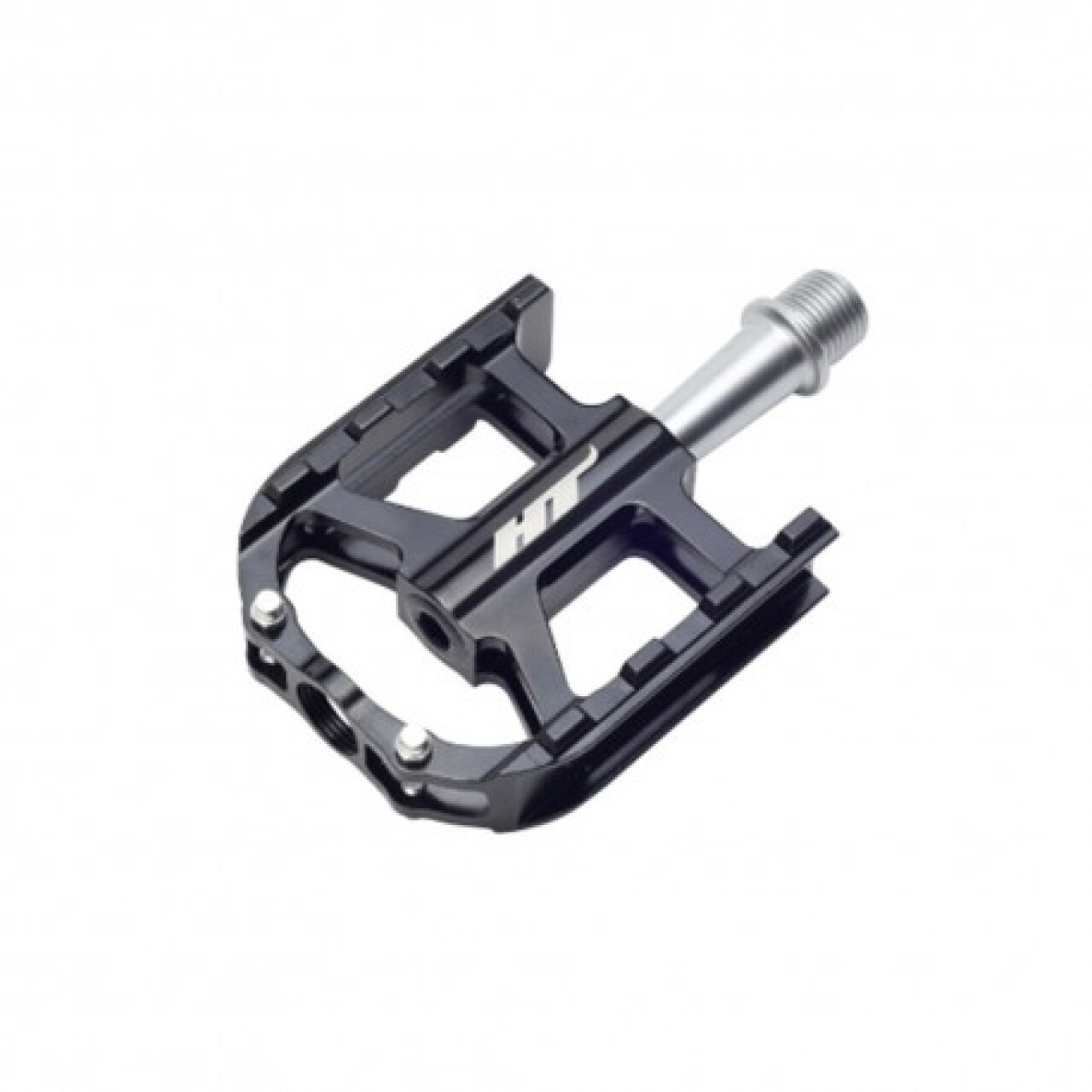 Педали HT AR12 — это прекрасные педали-топталки с уникальным минималистичным дизайном и рекордно низким весом. Модель выполнена из экструдированного алюминия с обработкой на ЧПУ станке для облегчения конструкции. Педали прекрасно подойдут для катания на комфортных, складных, горных и электровелосипедах. Каждая педаль имеет по 2 сменных шипа с каждой стороны которые обеспечивают непревзойденное сцепление обуви с педалью. Ось выполнена из высокопрочного хром-молибдена (Cr-Mo). В конструкции используются втулка Igus и запатентованные игольчатые подшипники закрытого типа, обеспечивающие отличную торсионную жесткость и длительный срок службы без обслуживания. Стандарт резьбы на оси: 9/16 дюймов. Вес пары педалей составляет 211 грамм.