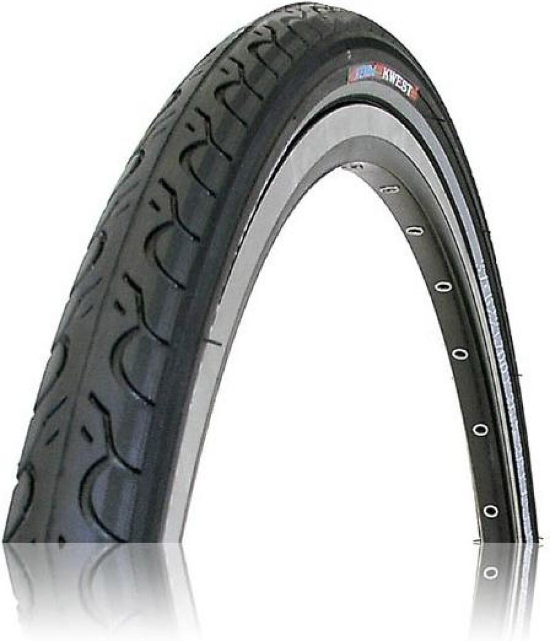 Kenda Kenda Kwest K193 - надежная и практичная камерная покрышка для шоссейных, городских, и туринговых велосипедов. Оптимальное применение находит в тренировочном и повседневном катании по городу. За счет гладкого центра и бокового рисунка, лучше всего потенциал покрышки раскрывается на гладком, чистом асфальте в сухую погоду. Во влажную погоду покрышка показывает умеренные показатели, но тем не менее стабильное поведение благодаря каналам для отвода воды. Совместима с колесами 700С, имеет ширину 28С, располагает к установке как спереди, так и сзади. Установка возможна только с камерой. В своем оснащении имеет жесткий, стальной корд, плетение 27 TPI, держит давление до 120 PSI, посадочный размер 28-622.