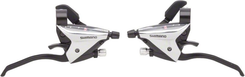 Shimano ST-EF65 - комплект шифтеров серии Tourney для MTB дисциплин и городских велосипедов. Рассчитан под правую и левую руку, на скоростные трансмиссии 3х9, лепестки предназначены для управления большим и указательным пальцем. Небольшой дисплей с нумерацией укажет выбранную скорость. Имеет интегрированную тормозную ручку для механических тормозных систем, например V-brake или дисковыми механическими. Фиксируется на руль при помощи алюминиевого хомута. Трос шифтера и оплетка прилагаются в комплекте, задний имеет стандартную длину 2050мм, передний 1800 мм. Троса выполнены из нержавеющей стали. Тормозной трос в оснащение не входит, конструкция рассчитана для стандартных MTB тросиков.