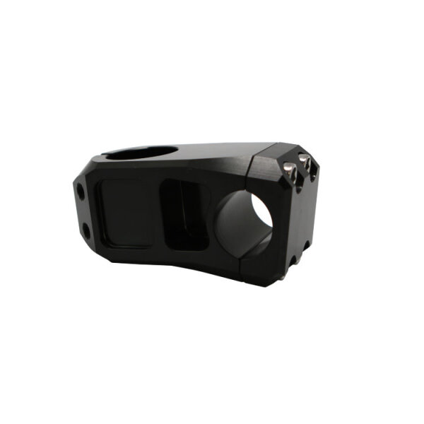 Вынос MJ CYCLE TB-056NC - недорогое и качественное решение для вашего BMX. Корпус из фрезерованного алюминия, болты из прочной стали, стандарт Front Load. Рассчитан на рулевые штоки 1 1/8" и для BMX рулей с диаметром 25,4 мм. Шток прижимается двумя болтами, руль четырьмя. Длина выноса по точкам крепления 50 мм, выполнен без подъема.