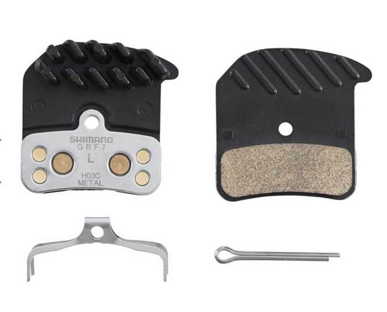 Shimano H03- высокоэффективные тормозные колодки для профессиональных тормозных систем. Колодки металлические, что положительно сказывается на четкости дозировки тормозного усилия и эффективности торможения. Алюминиевая подложка с ребрами охлаждения (технология Ice-Tech) способствует эффективному теплообмену и продлевает срок службы колодок. Совместимы практически со всеми моделями роторов Shimano для MTB дисциплин. Сочетаются с линейками тормозных калиперов Shimano BR-M820 и BR-M640. Комплект рассчитан на один тормозной контур и состоит из двух колодок, пружины и фиксирующей клипсы.