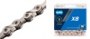 KMC X8 - производительная и недорогая цепь для DH, MTB, циклокроссового и городского направления велосипедов. Считается одной из высоких моделей в линейке производителя. Цепь универсальная, совместима с актуальными трансмиссиями SHIMANO, SRAM, Compagnolo и прочих производителей. Выполнена с применением технологий Stretch Proof Treatment, Mushroomed Riveting, Double X Bridge Shape и Inner Plate Chamfering. Они препятствуют растяжению и разрыву цепи, а специальная конструкция звеньев способствует четкому и плавному перескакиванию по звездам трансмиссии. Имеет 116 звеньев с размером 1/2"x3/32", подойдет для 8-ми скоростных кассет. Совместима с замками цепей KMC CL573R, CL573. Рассчитана для трансмиссий с диапазоном 1х8, 2х8 и 3х8.