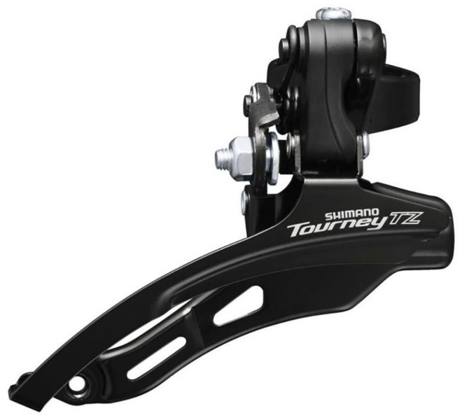 Передний переключатель Shimano Tourney FD-TZ510, предназначен для трансмиссии 3х6/7 скоростей с максимально большой звездой 48Т. Переключатель имеет верхнюю тягу, установочный хомут 28.6 мм.