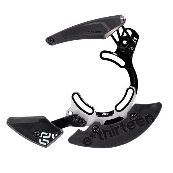 Успокоитель цепи E Thirteen Vario Downhill— это уникальный элемент велосипеда, который гасит рывки и постоянные колебания цепи, отлично снижает риск того, что цепь может слететь с ведущей звезды. Данная версия натяжителя Downhill имеет комплектацию Full, куда входит: задняя панель на 3 болтах, верхний слайдер с полным покрытием, натяжной ролик, противоударный бампер для ведущей звезды, фурнитура. Успокоитель идеально подходит для самых сложных трасс, где требуются дополнительная защита. Vario Downhill отлично подойдёт для ведущих звёзд с диапазоном 28–36T. В комплект так же входит два противоударных бампера для ведущих звёзд 28–32Т и 34–36Т. Крепится успокоитель к раме по стандарту крепления ISCG05.