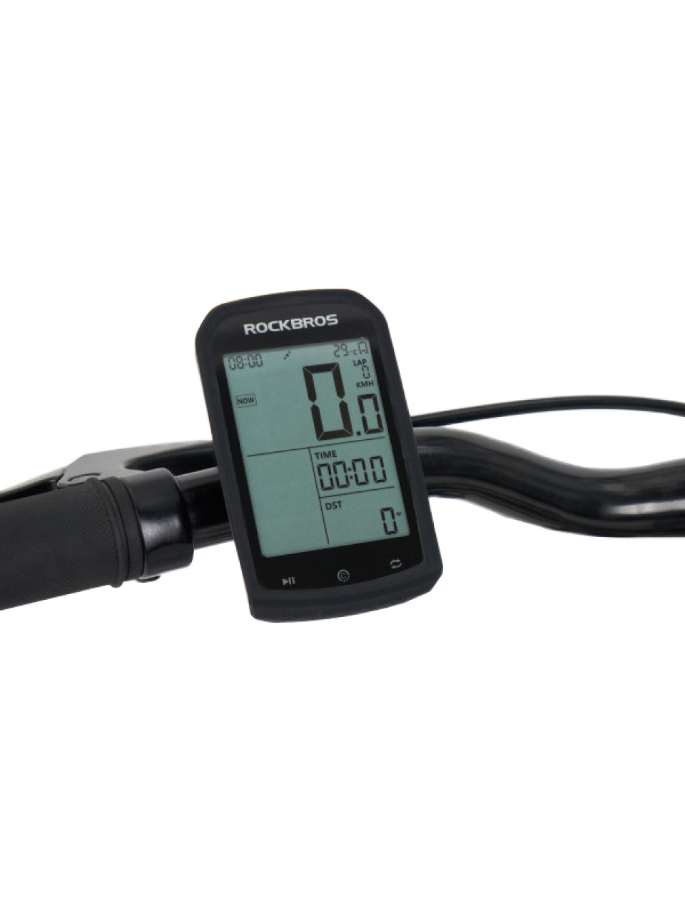 Беспроводной велокомпьютер Rockbros М1 smart GPS. Обладает одним из высоких показателей баланса в отношении цены и технологичности. Дизайн аккуратный и современный, благодаря беспроводному датчику, гармонично размещается на велосипеде, без лишних проводов. Выполнен из прочного пластика с влагозащитой класса IPX7, что позволяет использовать компьютер в дождливую погоду и не волноваться о его сохранности. Он имеет достаточно большой информативный LCD HD дисплей диагональю 2.9 дюйма, в сравнении с моделями-одноклассниками, а фирменный крупный шрифт позволит легко считывать показания даже в условиях тряски во время поездки. В распоряжении 25 функций на пяти страницах, на каждой странице отображается по 7 функций, пример: определение текущей, средней и максимальной скорости благодаря smart GPS, текущий и общий пробег велосипеда, расход калорий на основе текущего и общего пробегов. Также, есть базовый счет времени - часы, время в пути и общее время поездок. Велокомпьютер крепится на руль велосипеда, всё необходимое для установки имеется в комплекте. Крепление является быстросъёмным. Данный компьютер имеет аккумуляторную батарею и полностью заряжается за 3,5 часа через USB Type-C, а время непрерывной работы составляет до 35 часов. Использование велокомпьютера позволяет не оставить без внимания все достижения и результаты Ваших заездов или велопрогулок, а также удобно рассчитывать пробег велосипеда для обслуживания и ТО.