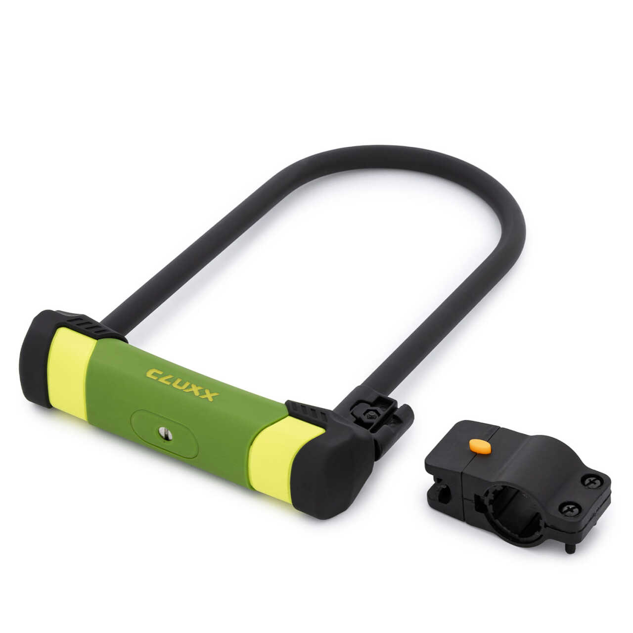 Велозамок Uguard 1000 - U-Lock высочайшего качества от немецкой компании Cluxx. Скоба замка выполнена из каленой стали, усиленной титаном, толщиной 12 мм, что станет практически непреодолимой преградой на пути взломщиков и угонщиков. Также препятствовать взлому будет система двойной блокировки в замке X2P Double Bolt - благодаря ей скоба фиксируется дважды, что снижает риск вскрытия. В комплекте к замку поставляются 3 ключа, что решает проблему утери, вы всегда сможете открыть ваш замок! Размер скобы 115 мм х 230 мм позволит без труда зафиксировать велосипед на парковке ли за статичный объект.