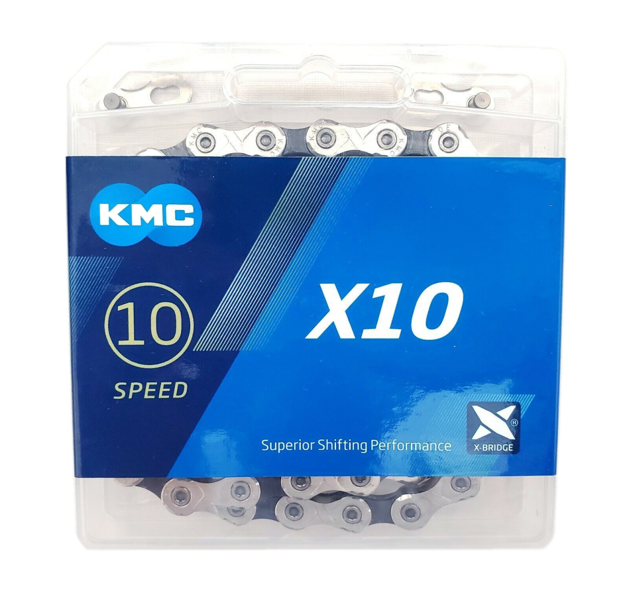 KMC X10 - производительная и недорогая цепь для DH, MTB, циклокроссового и городского направления велосипедов. Считается одной из высоких моделей в линейке производителя. Цепь универсальная, совместима с актуальными трансмиссиями SHIMANO, SRAM, Compagnolo и прочих производителей. Выполнена с применением технологий Highest Pin Power, Double X Durability, Double X Bridge Shape, Outer Plate Chamfering и Inner Plate Chamfering. Они препятствуют растяжению и разрыву цепи, а специальная конструкция звеньев способствует четкому и плавному перескакиванию по звездам трансмиссии. Имеет 114 звеньев с размером 1/2"x 11/128", подойдет для 10-ти скоростных кассет. Совместима с замками цепей KMC CL559R, CL559. Рассчитана для трансмиссий с диапазоном 1х10, 2х10 и 3х10.